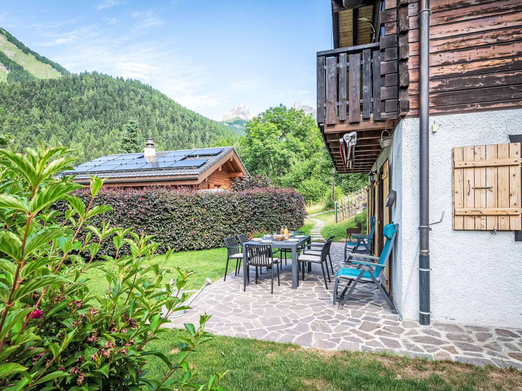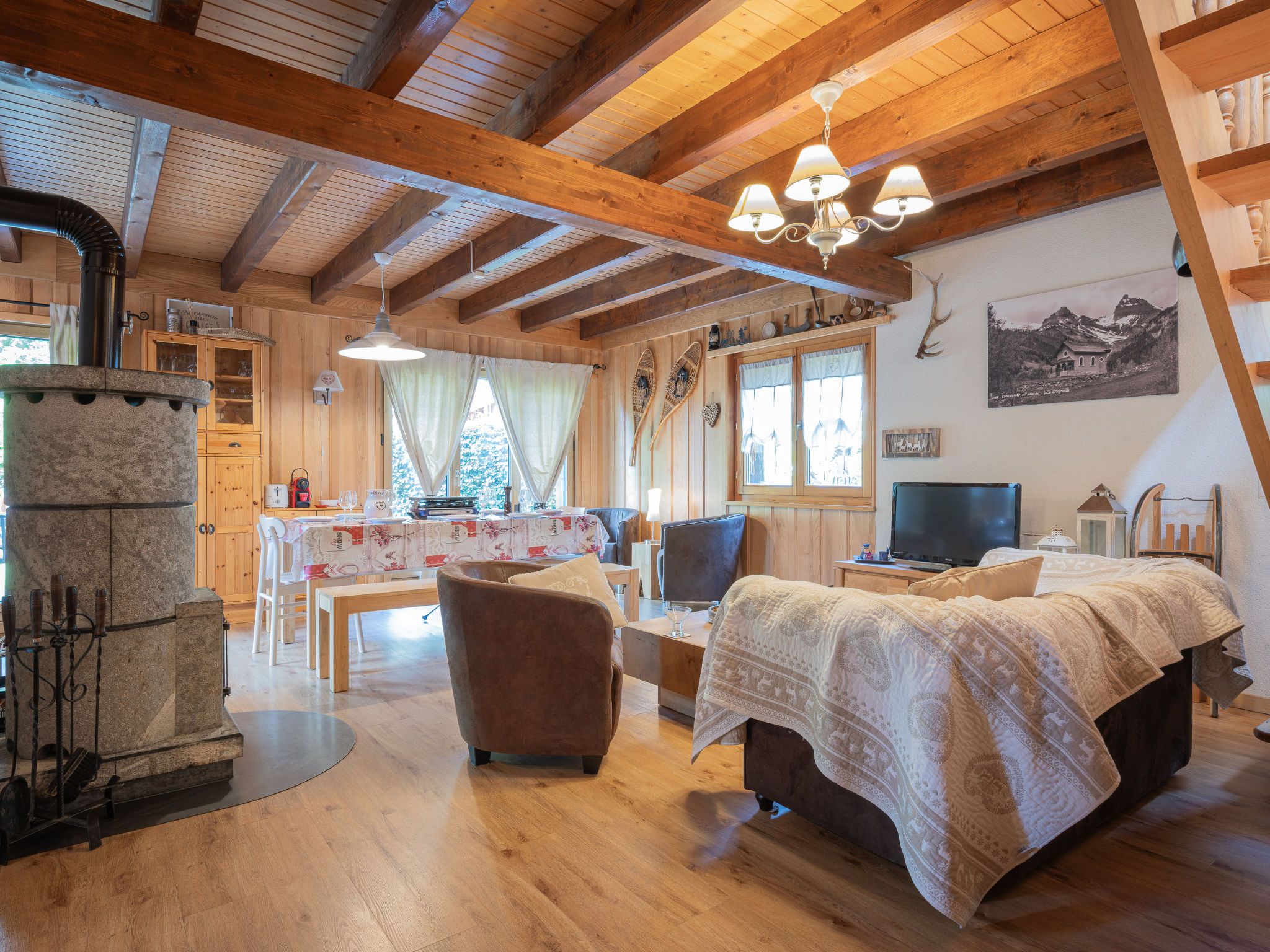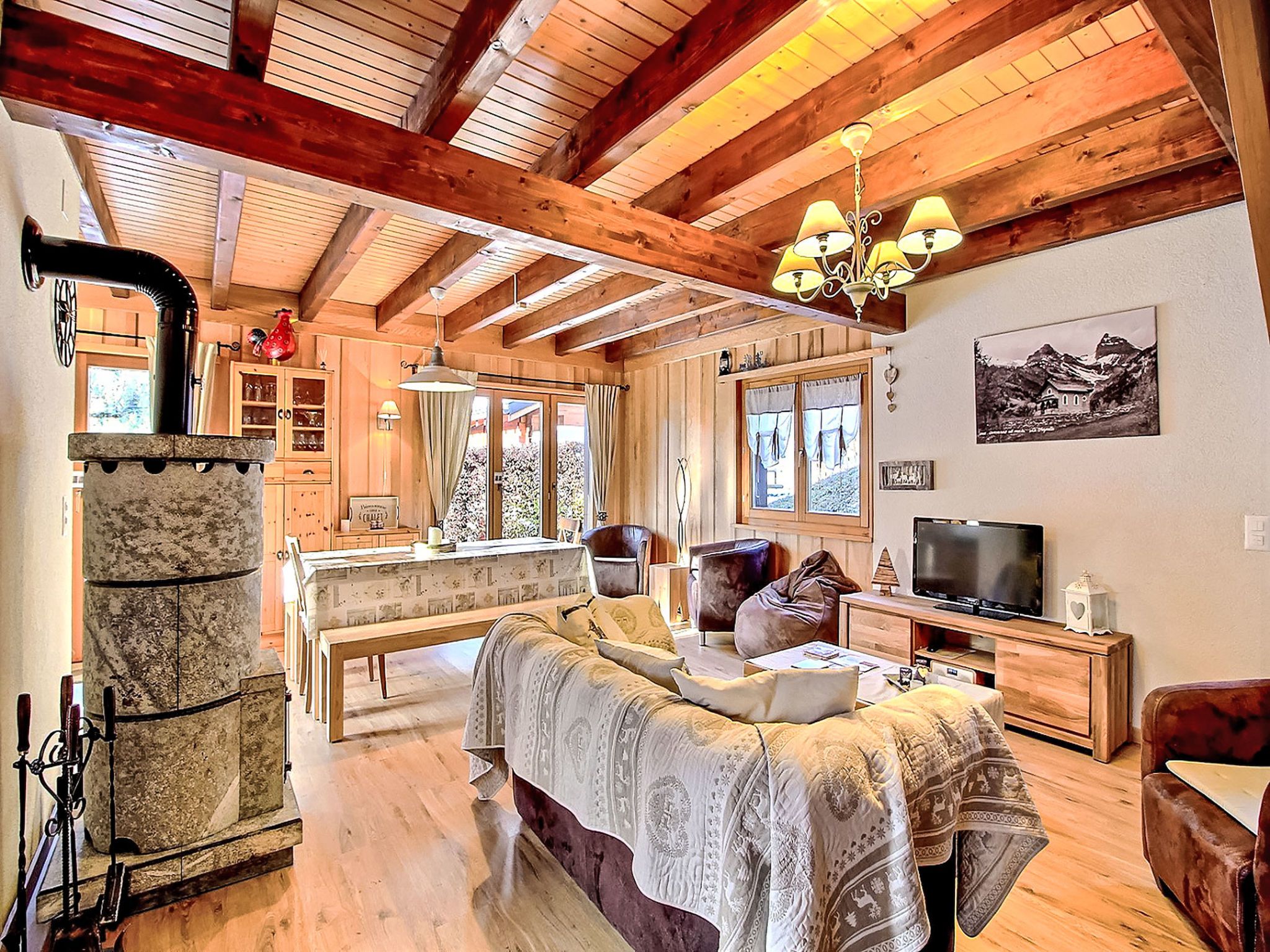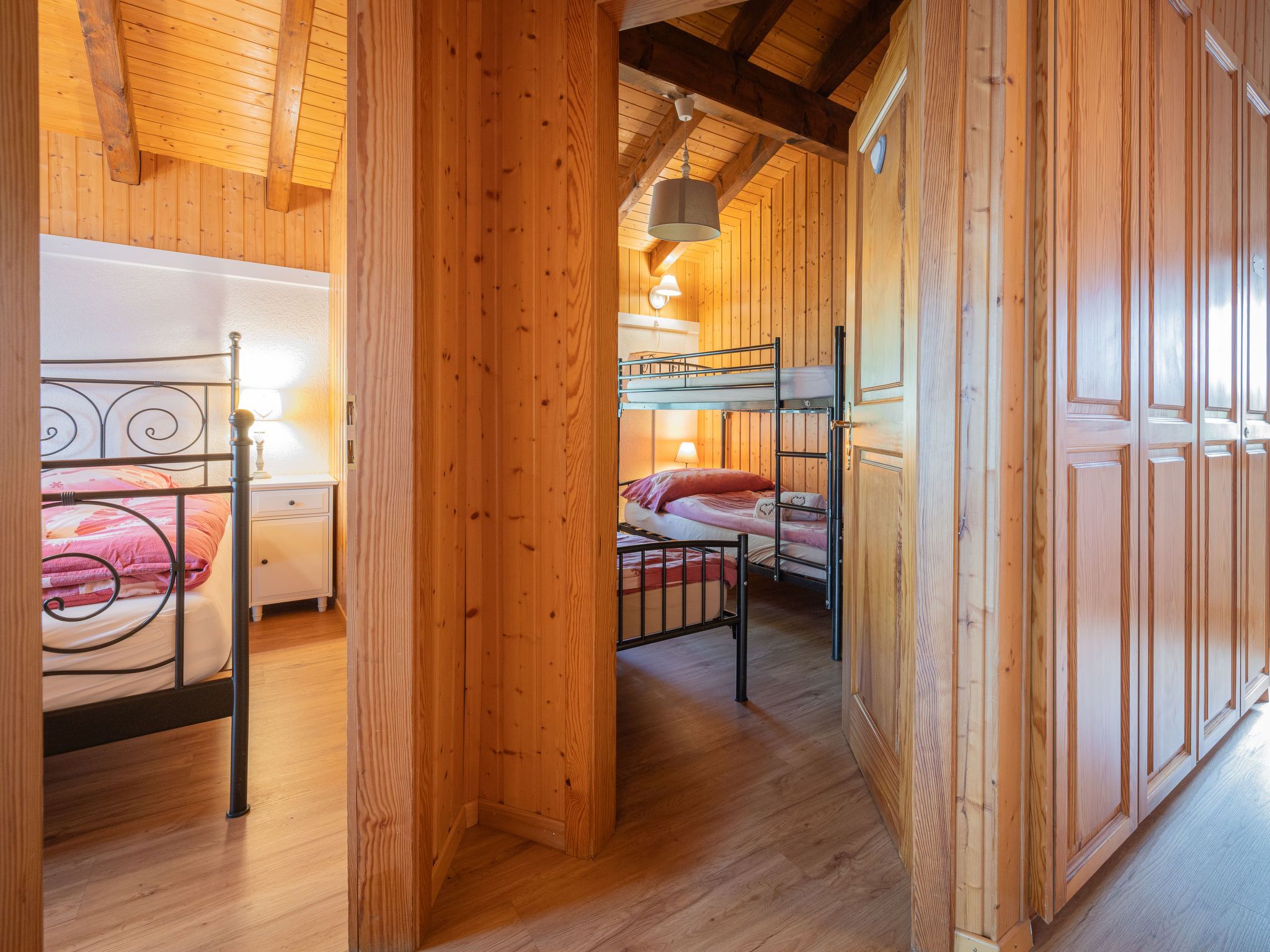 Le Coeur, 4-Zimmer-Chalet 100 m2 auf 2 Stockwerken, Westlage. Objekt geeignet für 4 Erwachsene + 3 Kinder. Abgeschrägt, teilweise renoviert im Jahre 2019, komfortabel und mit viel Holz eingerichtet: Wohn-/Esszimmer mit Schwedenofen, Kabel-TV und Radio. Ausgang zur Terrasse. Offene Küche (Backofen, Geschirrspüler, 4 Glaskeramikplatten, Toaster, Wasserkocher, Mikrowelle, elektrische Kaffeemaschine, Kapseln für die Kaffeemaschine (Nespresso) extra, Racletteofen, Fondue Set (Käse)). Dusche/WC. Obergeschoss: 1 Zimmer mit 1 franz. Bett (180 cm, Länge 200 cm). Ausgang zum Balkon. 1 Zimmer mit 1 franz. Bett (180 cm, Länge 200 cm). Ausgang zum Balkon. 1 Kinderzimmer mit 1 Bett (90 cm, Länge 190 cm), 1 x 2 Etagenbetten (90 cm, Länge 190 cm). Bad/WC. Balkon, Westlage, Terrasse, Westlage, Garten, Südlage und Westlage. Terrassenmöbel, Gartengrill. Sehr schöne Sicht auf die Berge und das Tal. Zur Verfügung: Waschmaschine, Wäschetrockner, Kinderhochstuhl, Babybett bis 2 Jahre, Haartrockner. Internet (WLAN, gratis). Parkplatz (1 Auto) in 20 m. Bitte beachten: geeignet für Familien. Nichtraucher-Haus. Maximal 1 Haustier/Hund erlaubt.