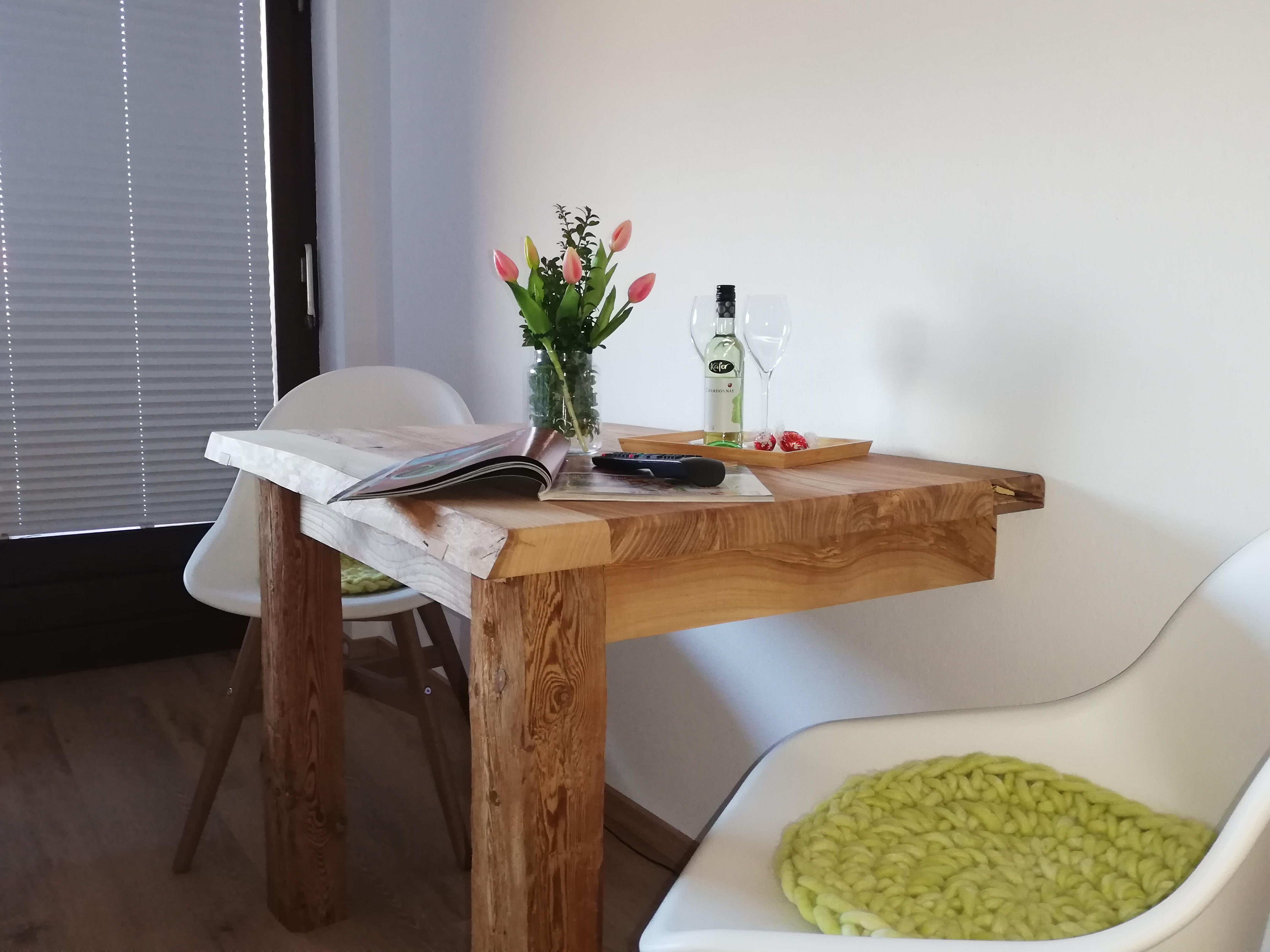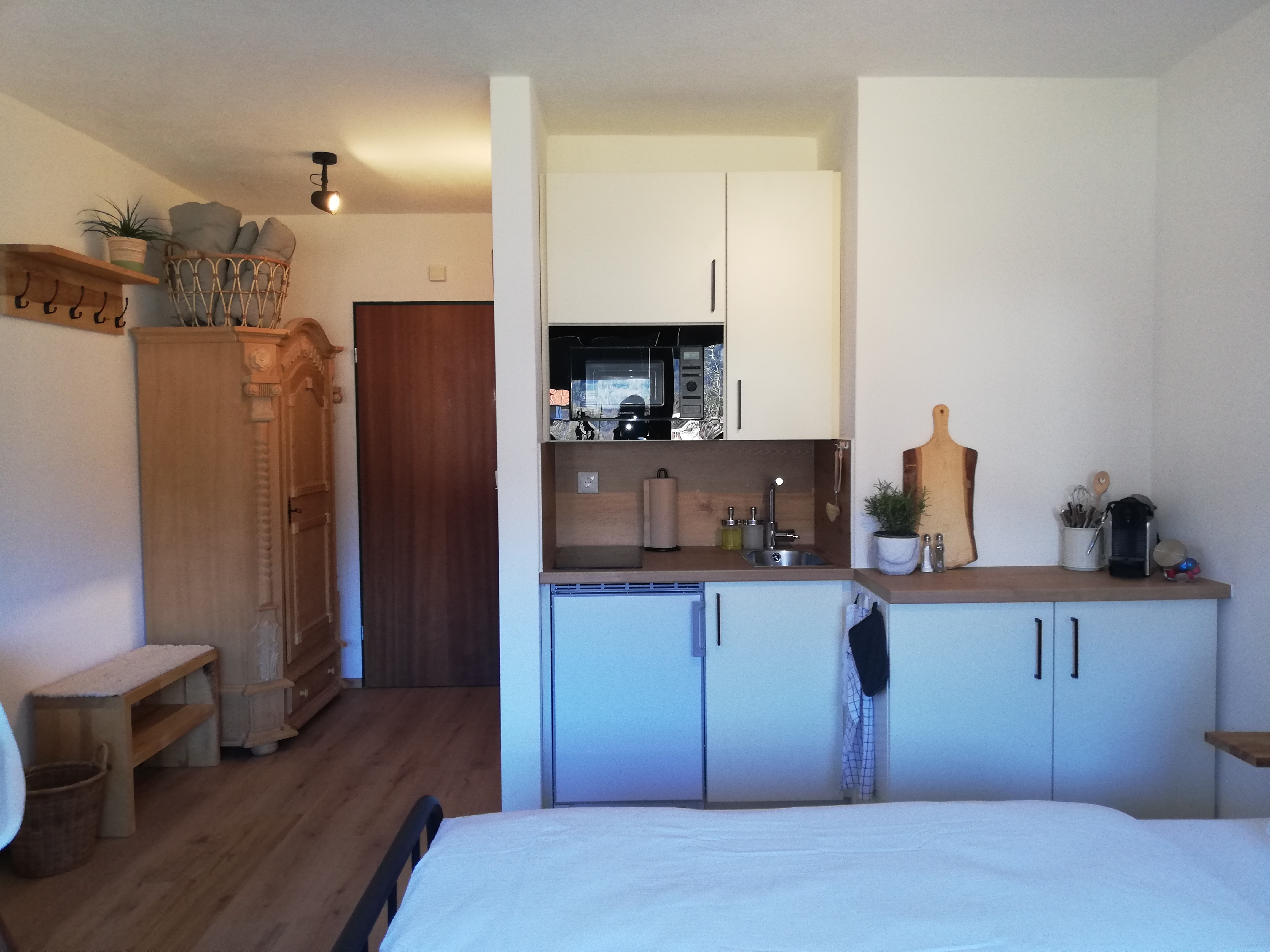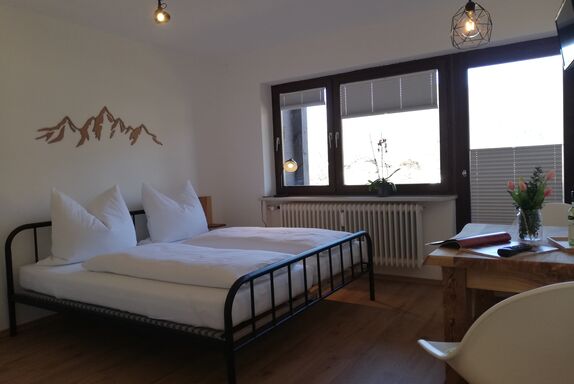 Das neu renovierte und liebevoll eingerichtete Appartement Gipfelstürmer ist perfekt für zwei Personen und verfügt über ein Badezimmer, Wohn/Schlafraum, sowie Balkon. Hier kann bereits beim Frühstück, wenn die ersten Vögel zwitschern, in die herrliche Schlechinger Bergwelt eingetaucht werden. Abends bei einem guten Glas Wein wird es am urigen Holztisch gemütlich.