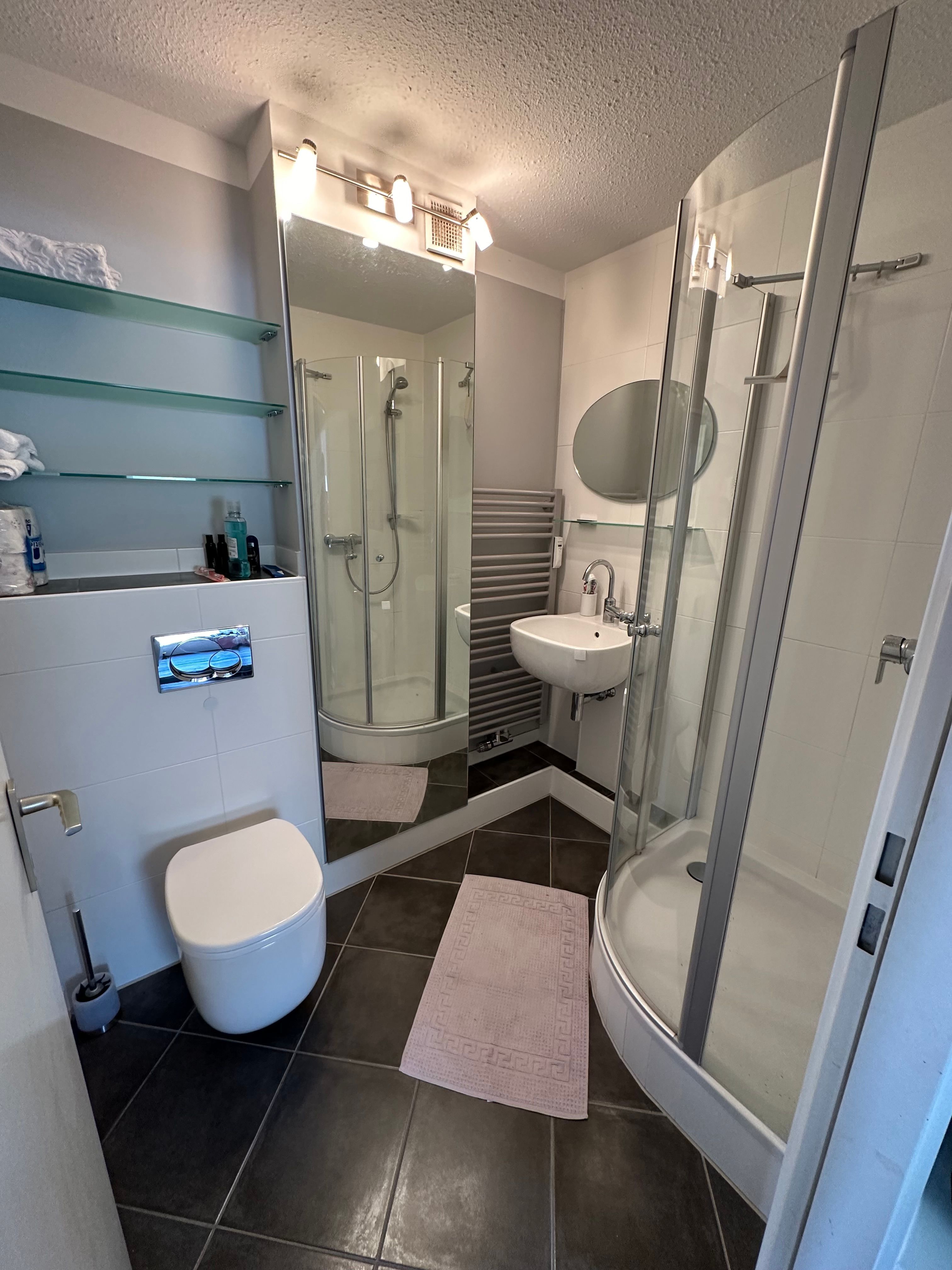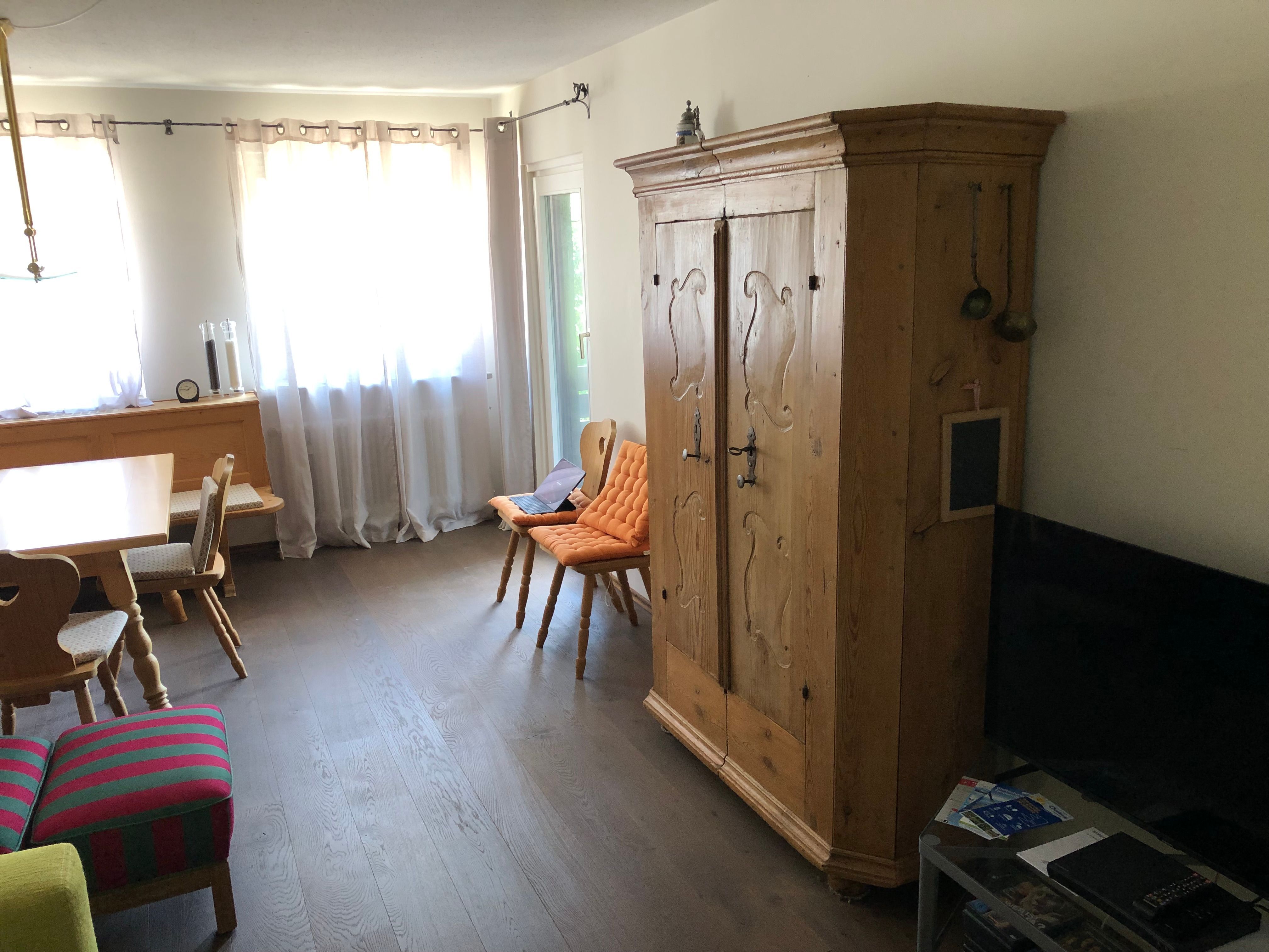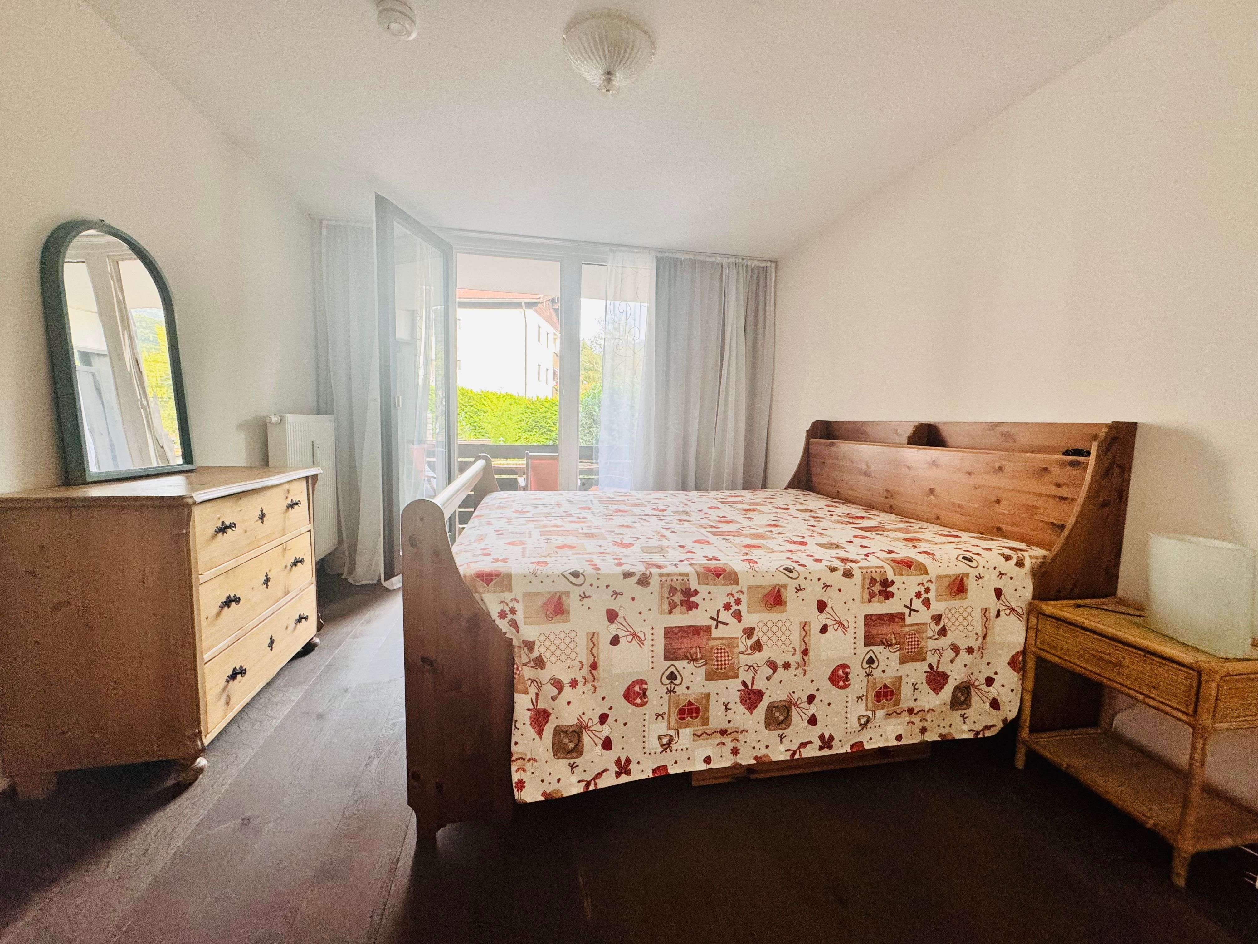 2-Zi.-Wohnung, 51 qm, 2.OG (Lift), voll ausgestattet (Wohn- und Schlafzimmer, Küche, Bad, Flur, Balkon möbliert mit Bergblick), 43-Zoll Smart-TV & DVD, WLAN, Info-Material/Karten in FeWo, Gästekarte digital aufs Smartphone (oder ausgedruckt über Tourist-Info)