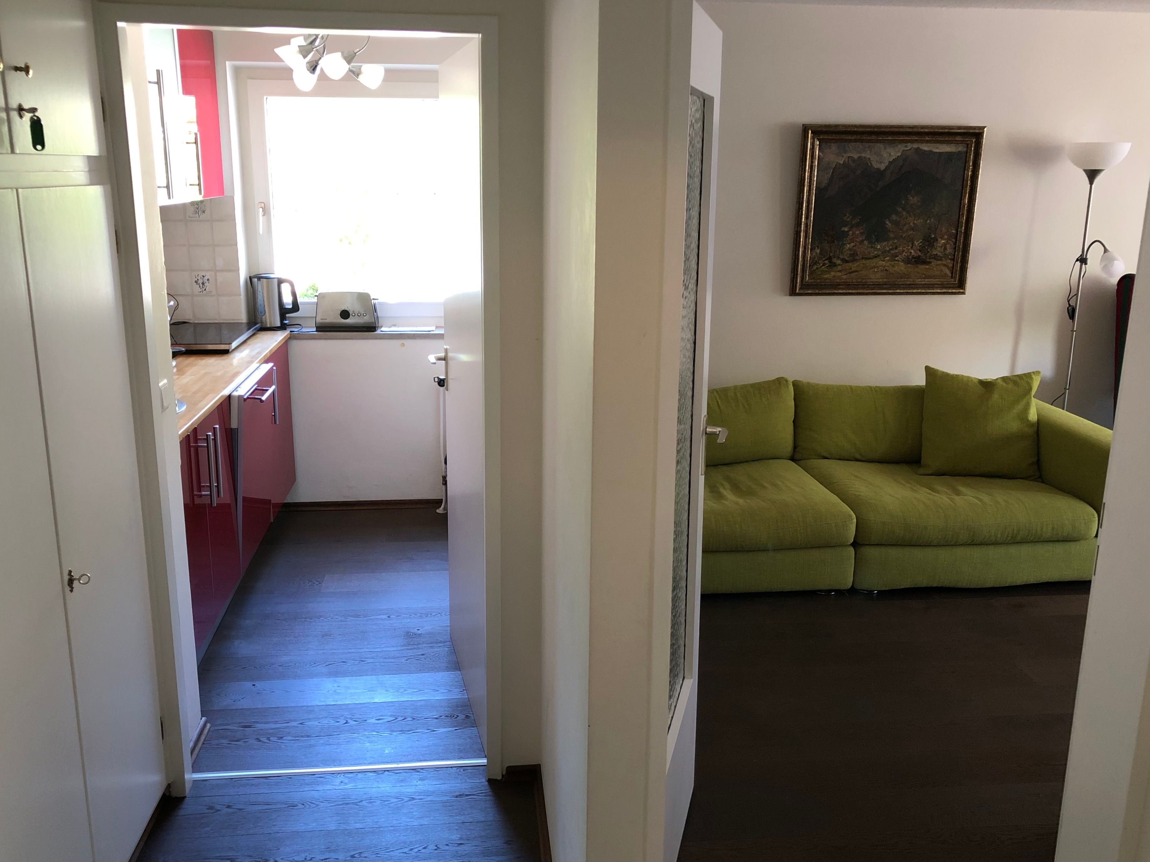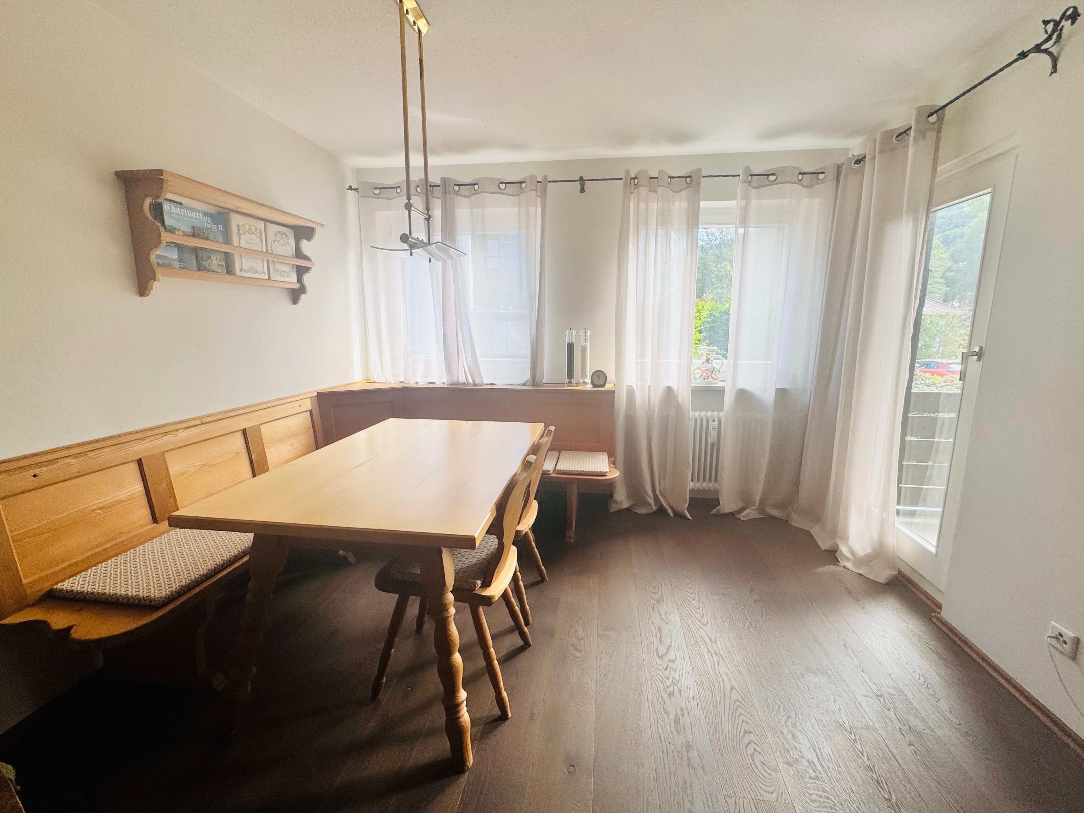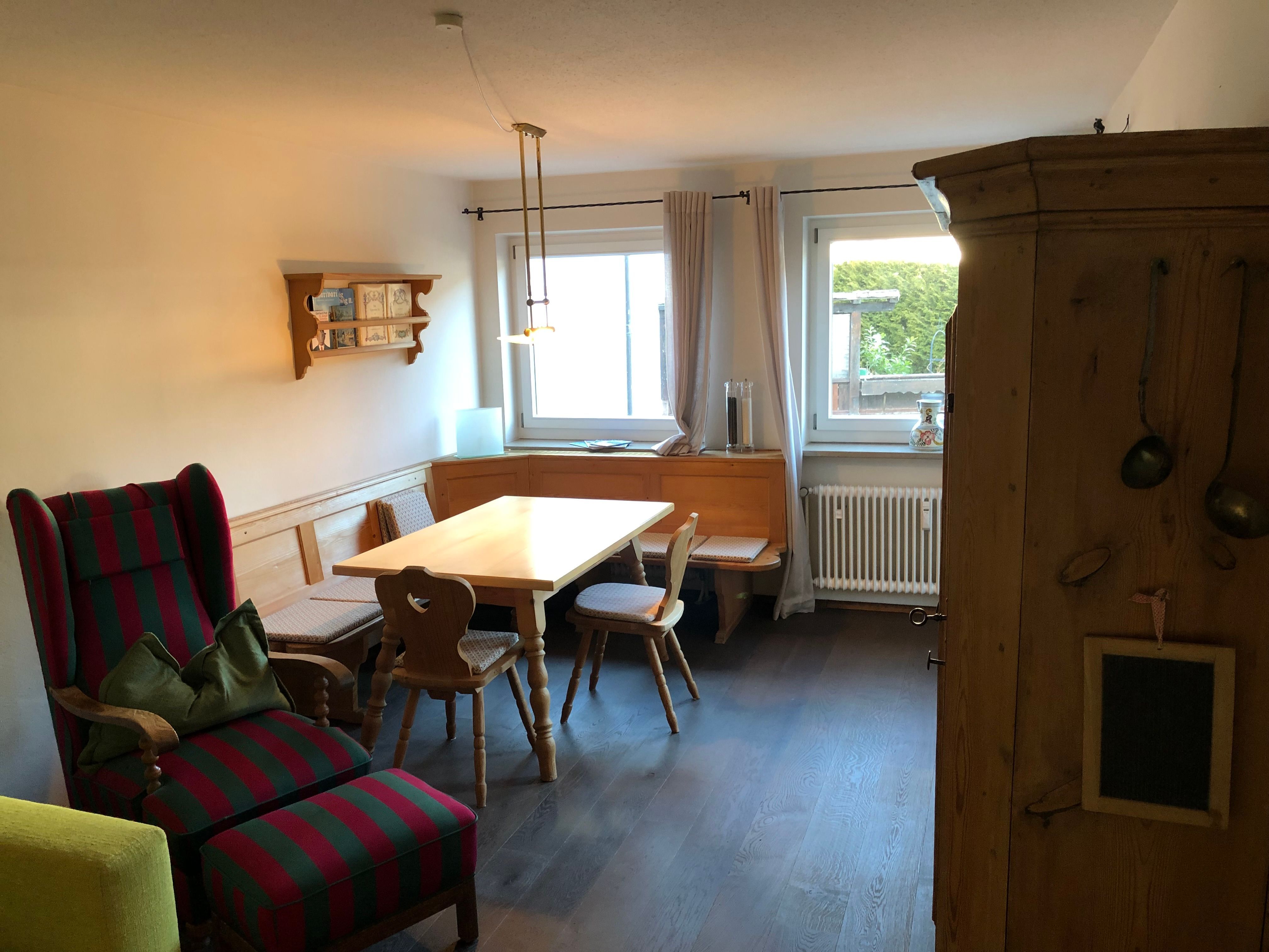 51 qm, gut geschnittene & helle 2-Zi.-Wohnung mit Flur, Küche und Bad (beide voll ausgestattet), Balkon mit Bergblick, zentrale Lage, 2007 komplett renoviert, bayerischer Stil (Eckbank, Bauernschrank usw.), Echtholzparkett, schönes Bad mit Dusche und Handtuch-Heizkörper, Smart-TV 43 Zoll mit KabelTV & DVD, WLAN, Nespresso-Maschine, Handtücher & Bettwäsche inklusive