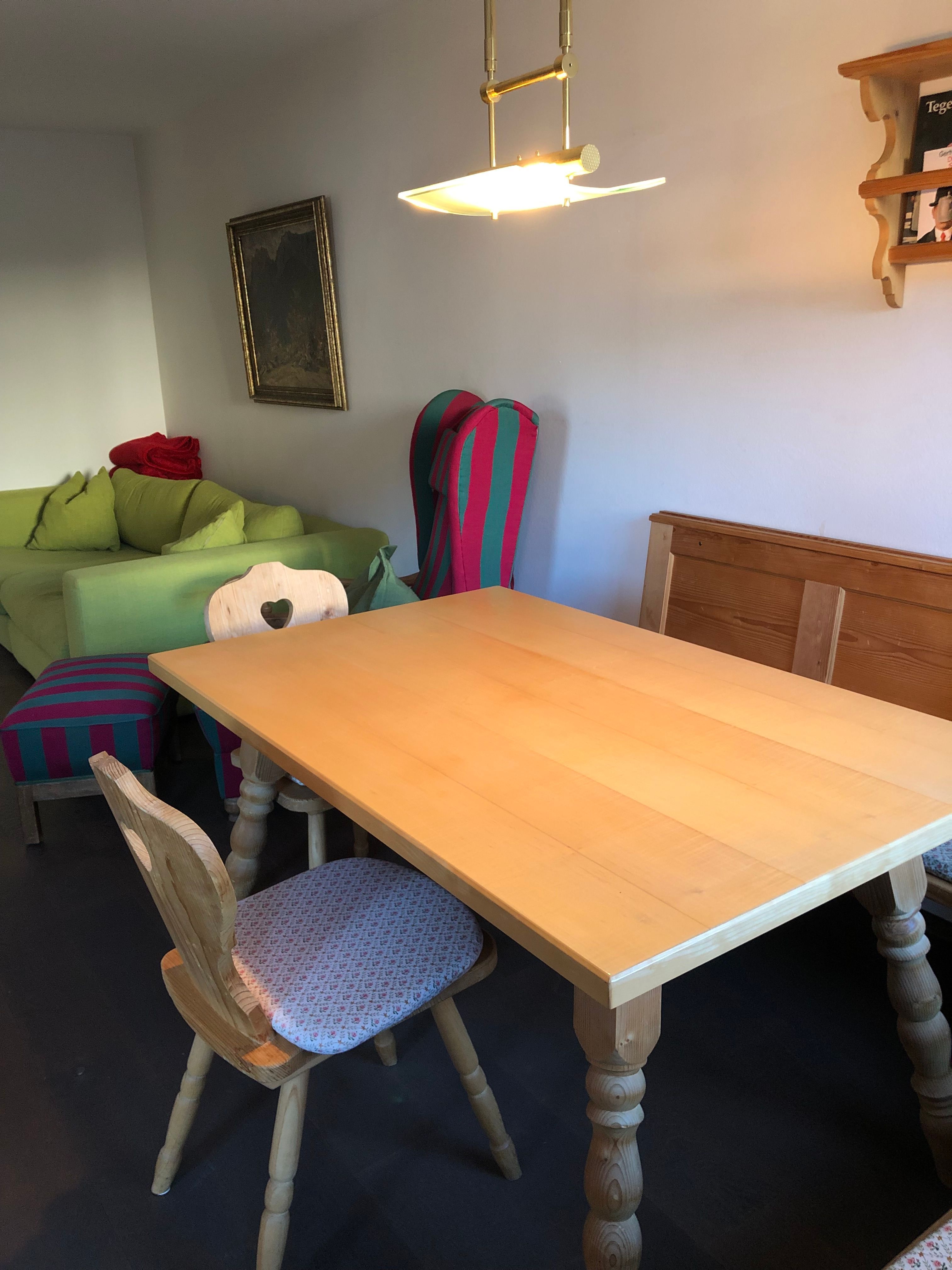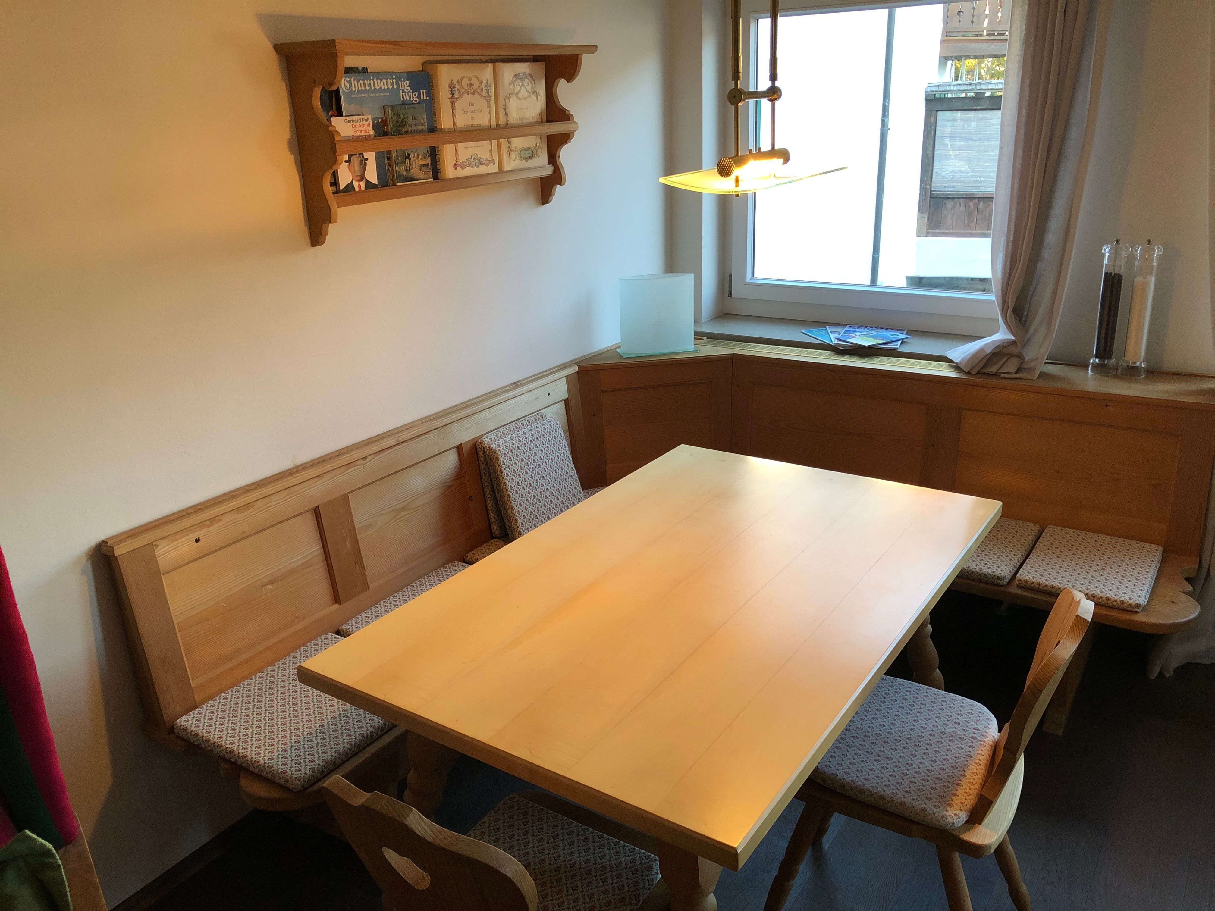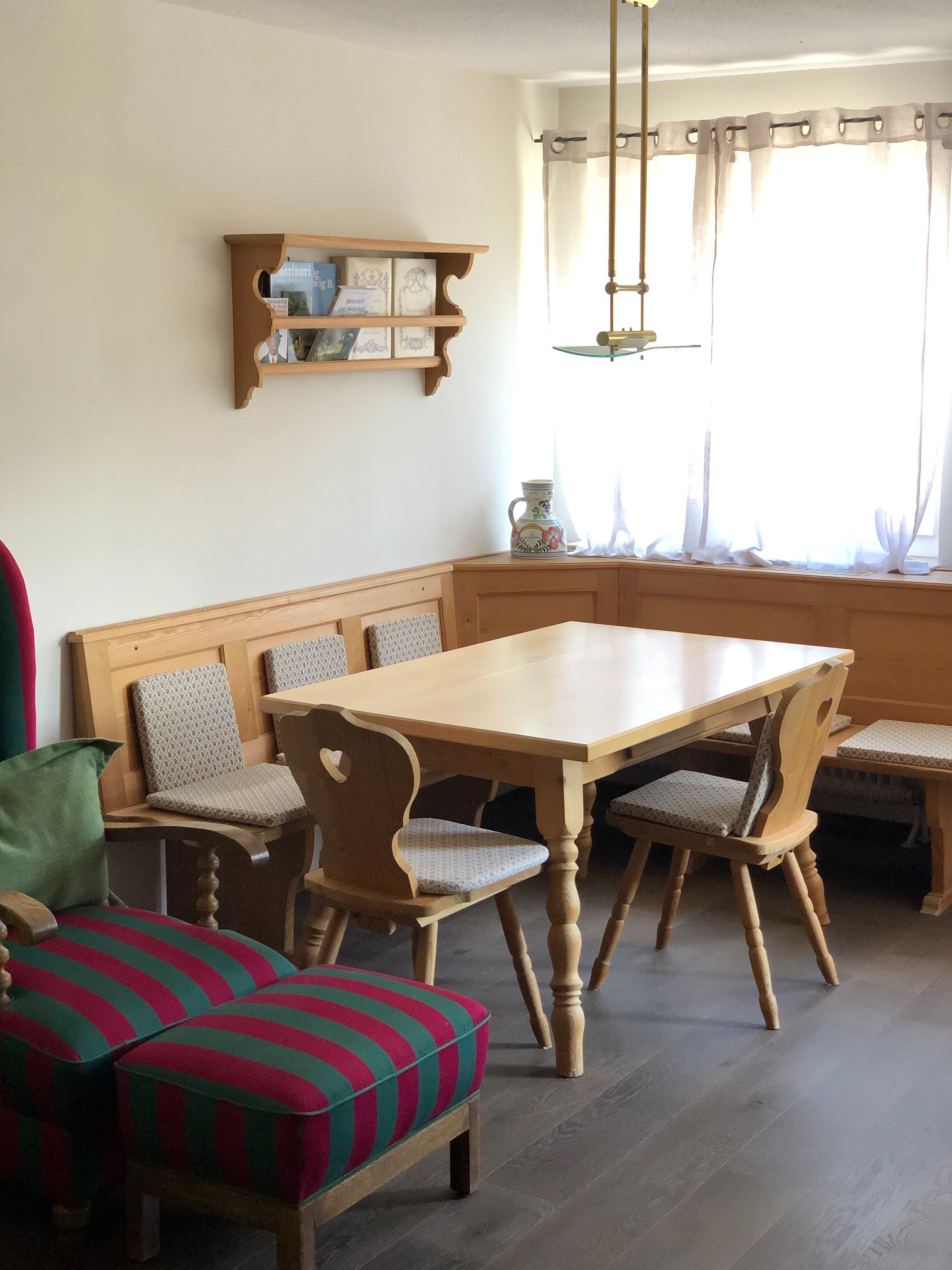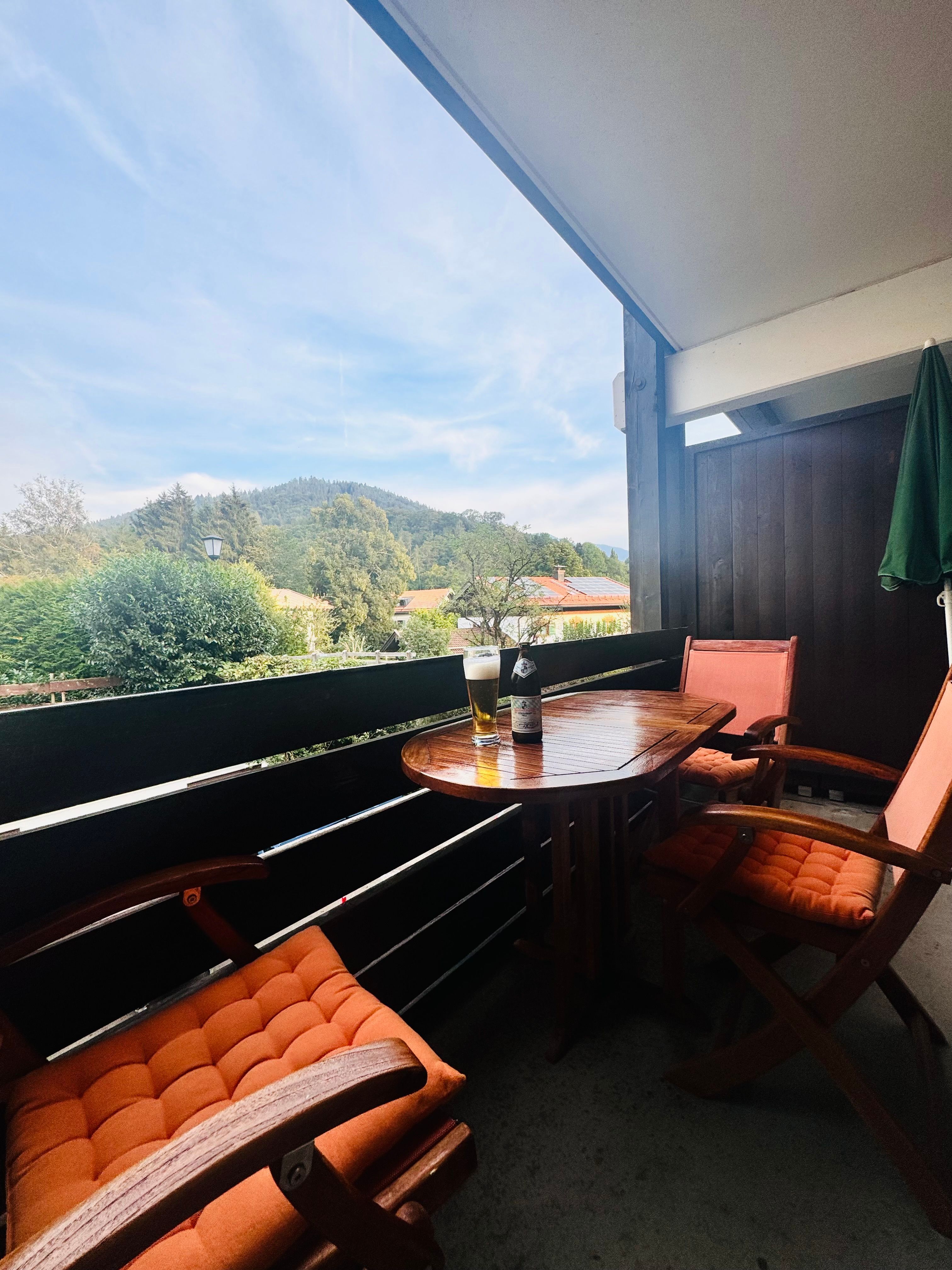 51 qm, gut geschnittene & helle 2-Zi.-Wohnung mit Flur, Küche und Bad (beide voll ausgestattet), Balkon mit Bergblick, zentrale Lage, 2007 komplett renoviert, bayerischer Stil (Eckbank, Bauernschrank usw.), Echtholzparkett, schönes Bad mit Dusche und Handtuch-Heizkörper, Smart-TV 43 Zoll mit KabelTV & DVD, WLAN, Nespresso-Maschine, Handtücher & Bettwäsche inklusive