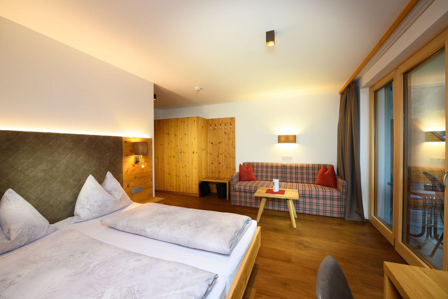 Die Zimmer Comfort können als Doppel-, Dreibett- oder Vierbettzimmer genützt werden. Sie befinden sich all in unserem Neubau und weisen eine Fläche von rund 28 m2 auf. Die Zimmer Comfort verfügen über einen Balkon mit Panoramablick. Flat-TV und gratis highspeed W-Lan sind selbstverständlich. Ebenso sind ein Kühlschrank sowie ein Zimmersafe vorhanden.