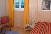 In unserer Hütte befindet sich im Erdgeschoß eine Ferienwohnung mit ca. 50 qm. Sie verfügt über einen eigenen Eingang mit Vorraum für die Garderobe, über eine Wohnküche, ein geräumiges Bad von ca. 9 qm mit Dusche, Waschbecken und Waschmaschine, eine Stube als Durchgangsraum mit einer Schlafliege, einem Schlafzimmer mit zwei Betten und eine vom Bad getrennte Toilette mit einem kleinen Waschbecken auf dem Flur. Zwei weitere Zimmer befinden sich im 1. Obergeschoß. Davon ein Zimmer als Durchgangszimmer mit einem Bett und das zweite Zimmer mit einem 140 cm breiten Bett. Im Dach- bzw. 2. Obergeschoß befinden sich ein weiteres Einzelzimmer. Das Haus bietet max. 6 Personen Platz.