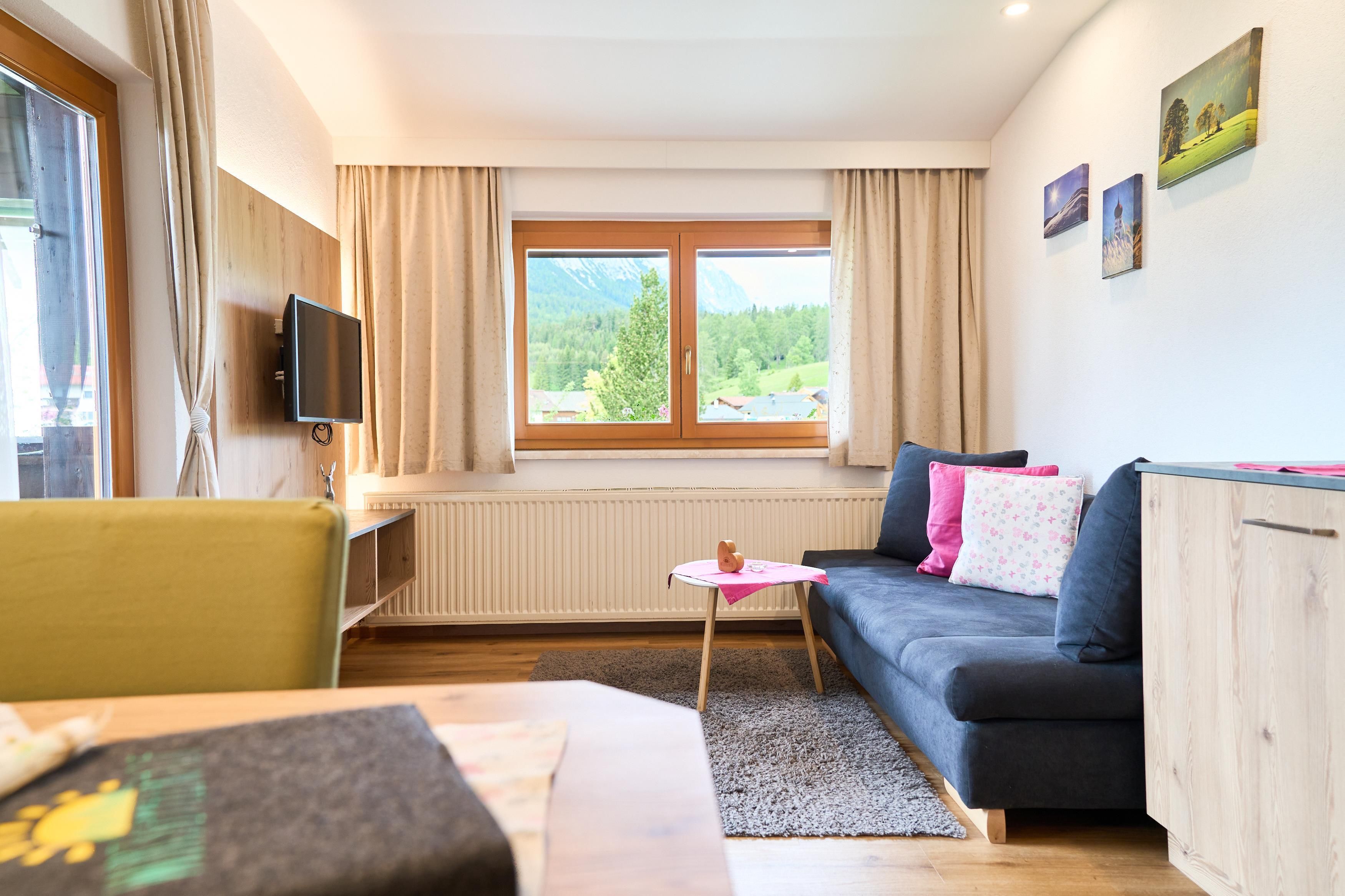 Die Ferienwohnung Hohe Munde lädt Sie zu einem erholsamen Aufenthalt ein! Sie verfügt über ein gemütliches Schlafzimmer, ein einladendes Wohnzimmer mit Schlafcouch und eine großzügige Kochnische mit Geschirrspüler. Das moderne Bad mit Dusche und WC sorgt für Komfort. Ein besonderes Highlight ist der sonnige Südbalkon, auf dem Sie entspannen und die Aussicht genießen können. Mit ca. 50 m² bietet die Wohnung Platz für bis zu 4 Personen.