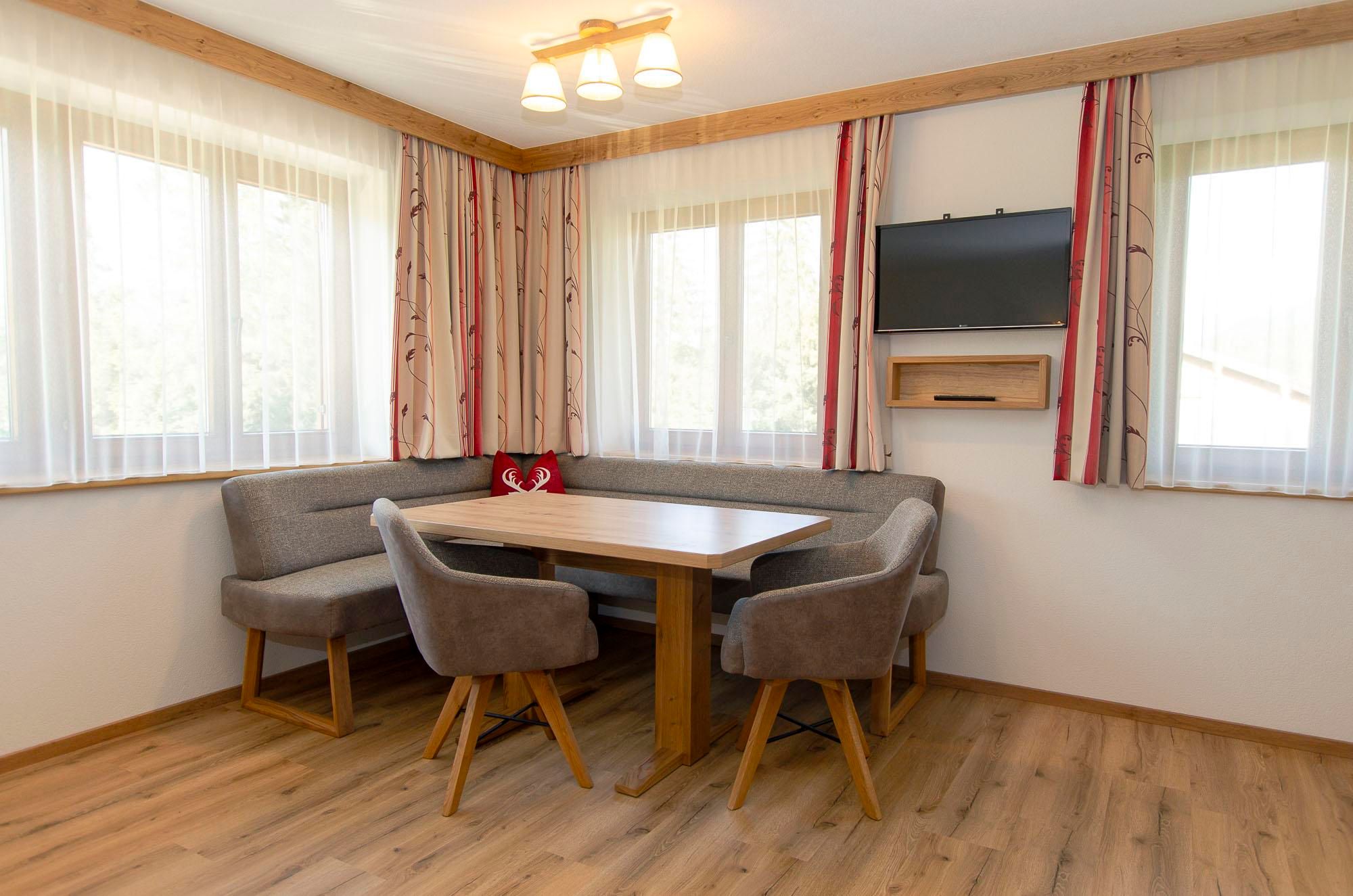 Verbringen Sie Ihren Urlaub in einer unserer komplett neuen Ferienwohnungen mit Balkon, Geschirrspüler und TV oder in unserem komfortablen Erkerzimmer mit Kachelofen und genießen Sie von allen Wohnungen aus einen schönen Ausblick auf das herrliche Bergpanorama und den Zahmen Kaiser.