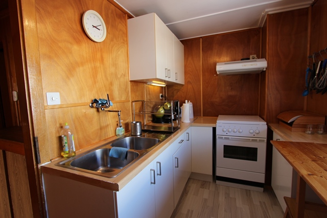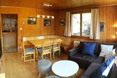 1. Stock: Wohnzimmer mit Sofa und Radio/TV. Offene Küche (Kühlschrank, Kochplatten/Ofen, Mikrowelle) und Esszimmer. Ein kleines Schlafzimmer mit einem Doppelbett 160 cm und einem einfachen Etagenbett 90 cm. Zweites Badezimmer/WC . Südbalkon.