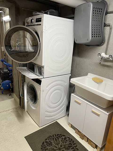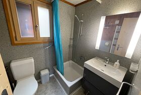 Erdgeschoss: Vorraum mit Garderobe; 1 Schlafzimmer mit Doppelbett und Duschbad/WC; Waschküche (Waschmaschine / Trockner)