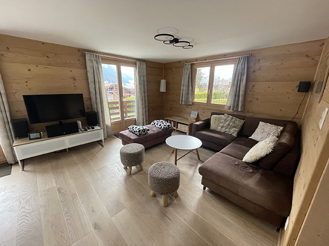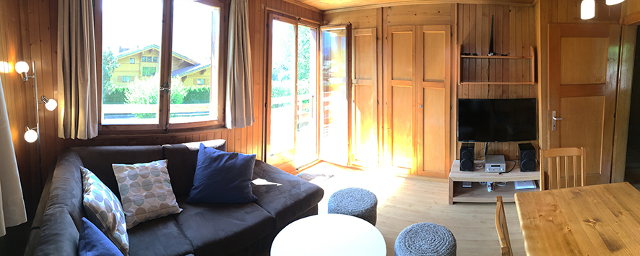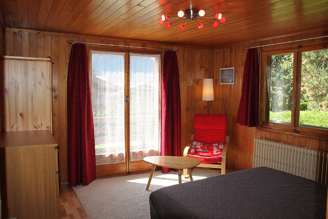 Hübsches kleines Chalet mit großem Garten in ruhiger Lage. Blick auf die Berge. Großer Balkon mit Südausrichtung. 10 Gehminuten vom Dorfzentrum entfernt. Bahnhaltestelle 5 Minuten entfernt