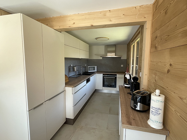 1. Stock: offene Küche (Herd / Backofen / Geschirrspüler / Kühlschrank) zum Esszimmer; großes Wohnzimmer (TV/Radio/WLAN); kleines Schlafzimmer (Doppelbett + Einzelstockbett); Duschraum/WC; großer Balkon