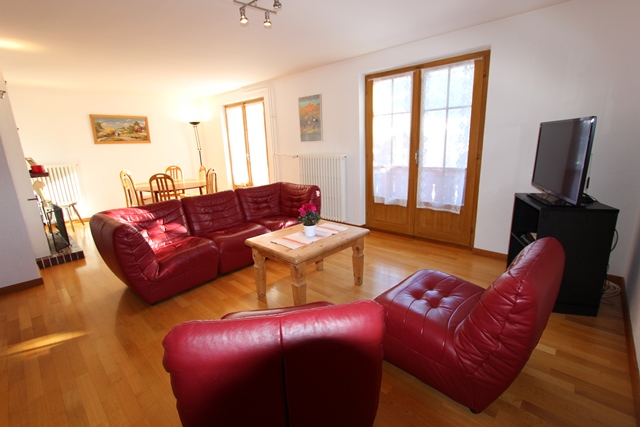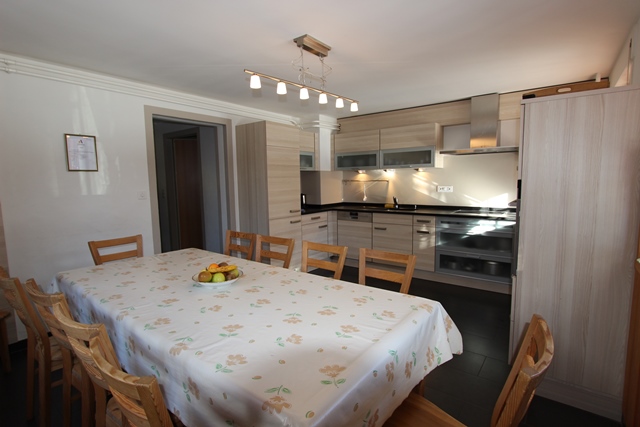 Ideal für Familien und Gruppen Erdgeschoss : Eingangshalle, Küche (Geschirrspüler, Kühlschrank und Mikrowellenofen), 1 separates WC, Waschküche, Abstellraum, Keller, Terrasse, 1 gedeckter und 2 offene Parkplätze. 1. Etage : Wohnzimmer mit Cheminee und Esszimmer, 1 Zimmer mit Etagenbett, 2 Doppelzimmer, 1 Badezimmer/WC. Südbalkon. 2. Etage : 2 Zimmer mit je 2 Einzelbetten, 1 Zimmer mit 1 Einzelbett, 1 Badezimmer/WC.