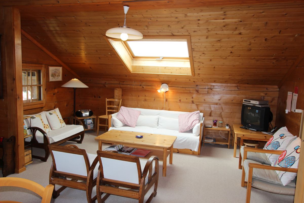 Charmantes Ganz-in-Holz-Appartement. Zentrale Lage, Chalet umringt von Grün. Wunderschöne Aussicht. Südbalkon. Optimale Sonnenausrichtung.