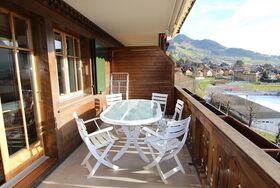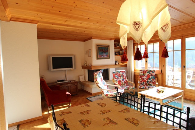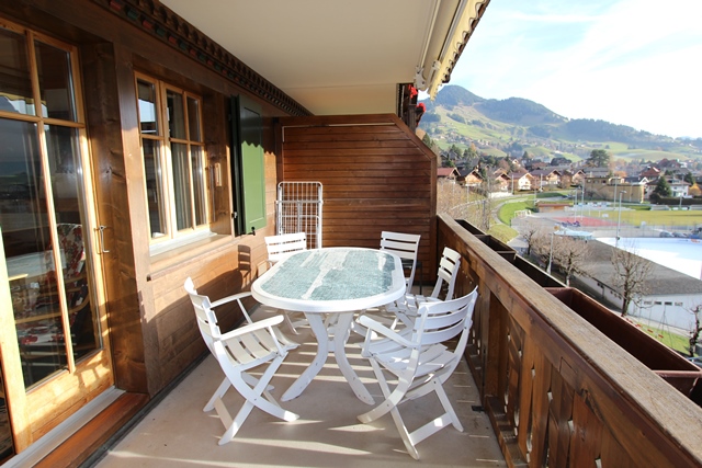 Schönes Appartement, etwas oberhalb von Château-d’Oex gelegen. Wunderschöne Aussicht auf den Hügel des Tempels von Château-d’Oex und die umliegenden Berge. Nahe der Sommer- und Winteraktivitäten.