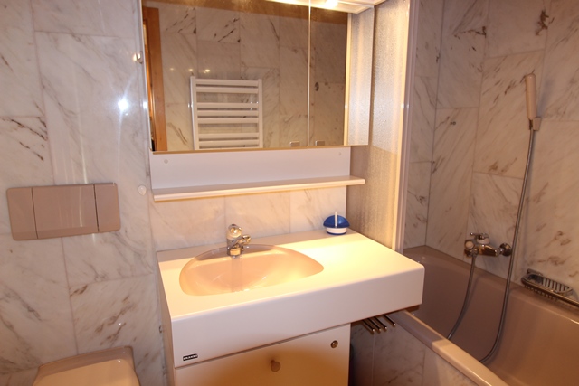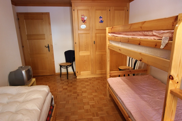 Ideal für eine Familie oder eine Gruppe Eingangshalle, Wohnzimmer mit Sofa-Bett, Cheminee und Esstisch, Küche (Backofen, Kühlschrank und Geschirrspüler), 1 Zimmer mit 1 Doppelbett, 1 Zimmer mit 1 Etagenbett und 1 Einzelbett, 1 Badezimmer/WC, Südbalkon. 1 Parkplatz in der Tiefgarage. Gemeinsame Waschküche im Gebäude.