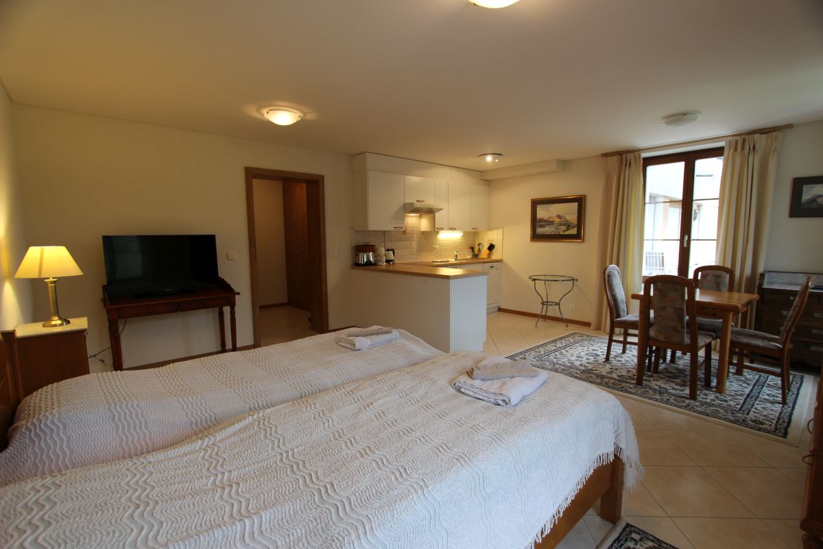 Dieses Studio befindet sich in der auf den Höhen von Château-d’Oex gelegenen Residenz Rosat. Ruhige Lage. Mit Innenpool, Saune und Fitnessraum.
