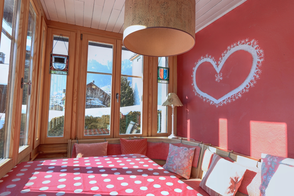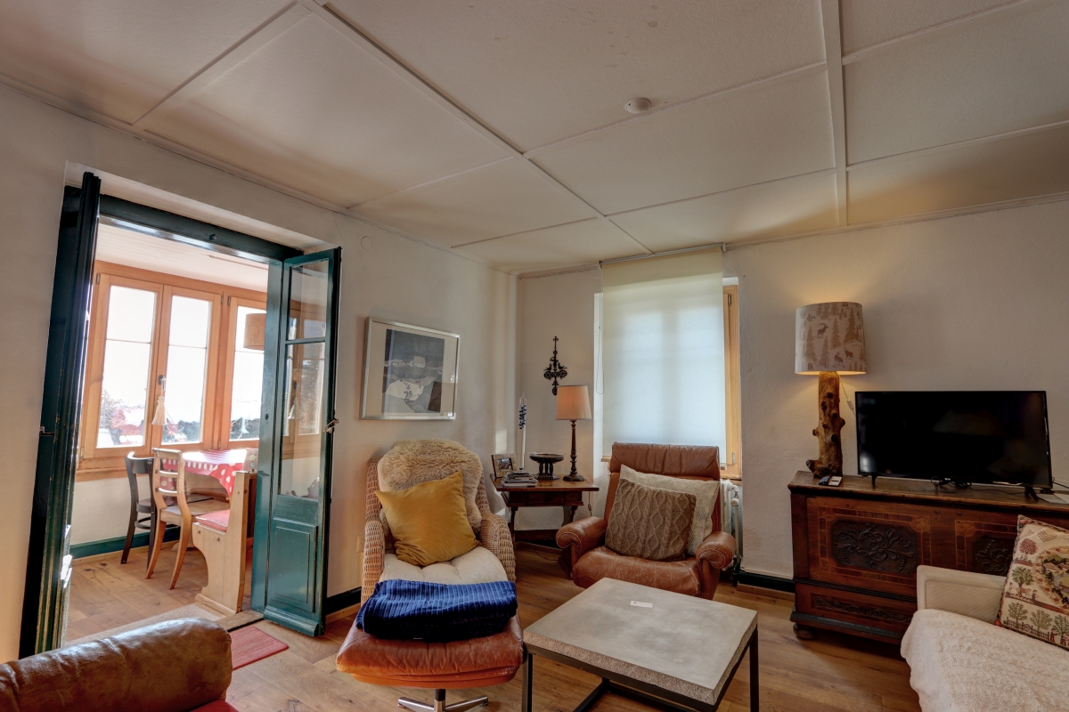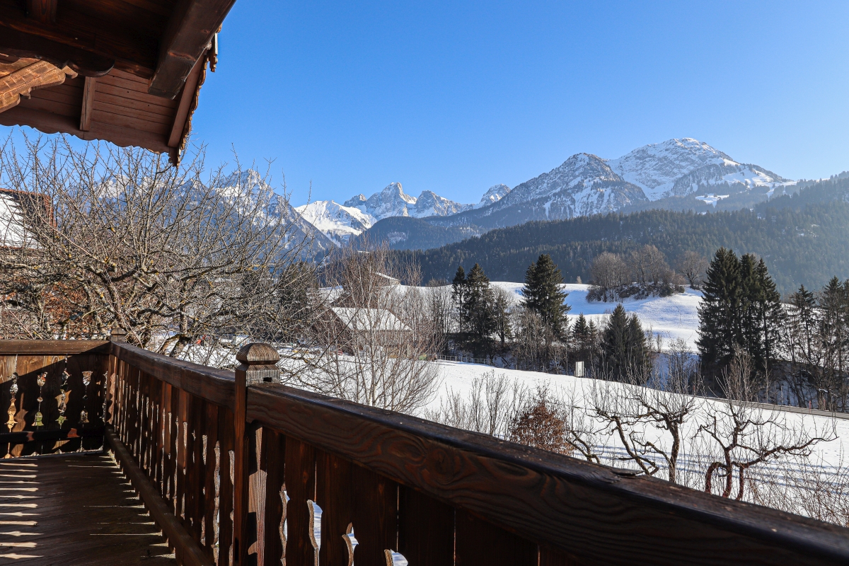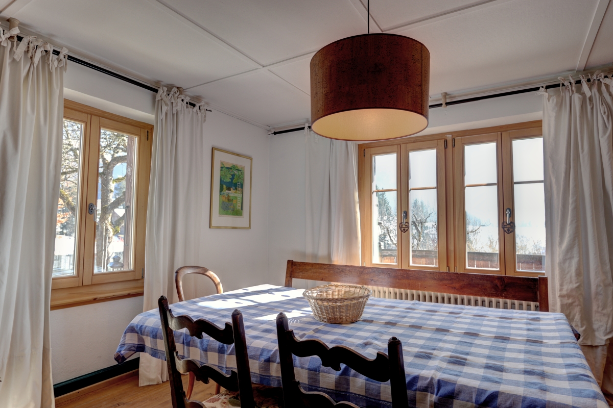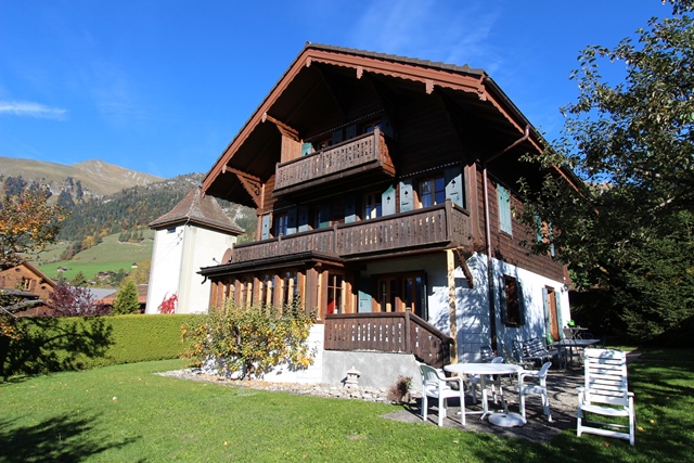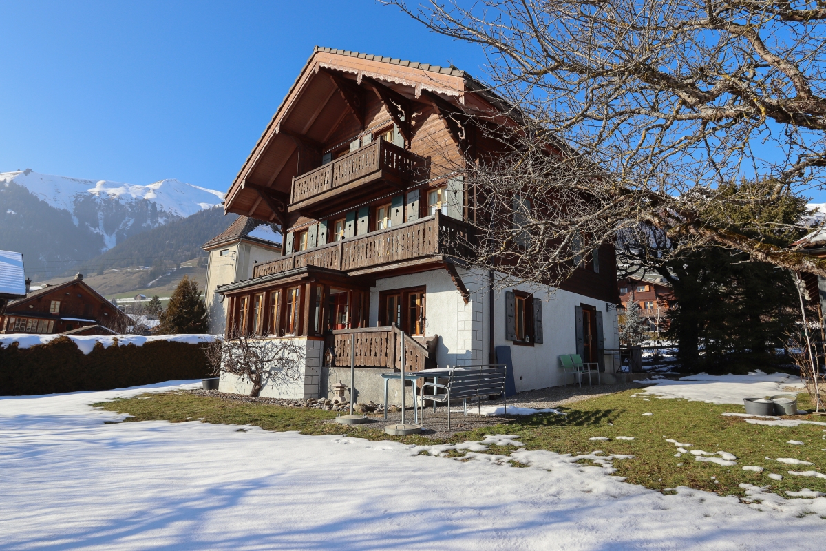 Im Herzen von Château-d’Oex gelegenes, geräumiges, komfortables Chalet. Ausrichtung Süd mit wunderschöner Aussicht auf die Berge.