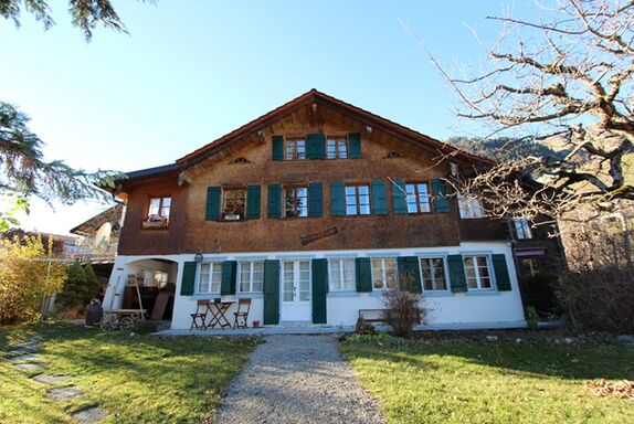 Dieses hübsche Appartement befindet sich in einem regionaltypischen, in einem angenehmen, ruhigen Quartier gelegenen Chalet. Ein kleiner Privatgarten steht zur Verfügung.