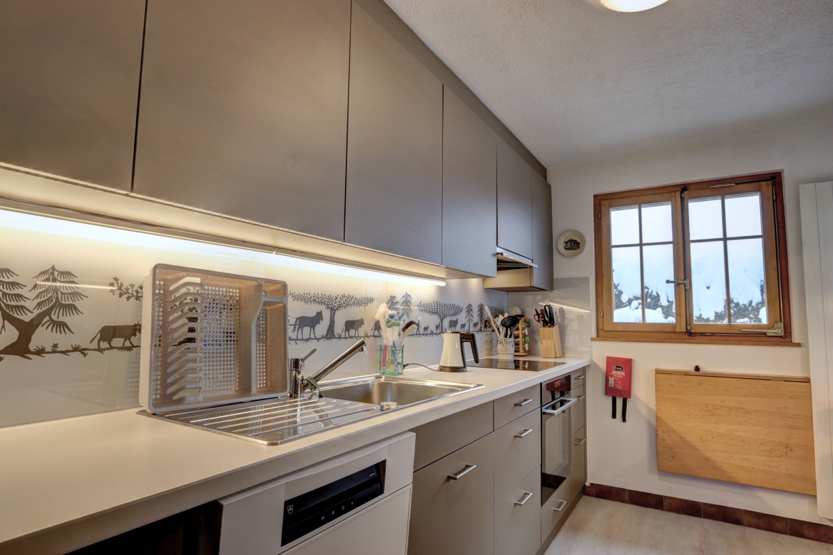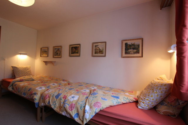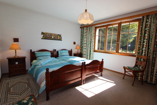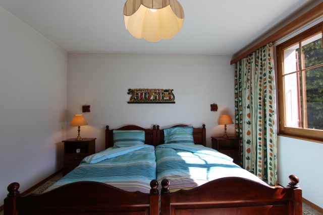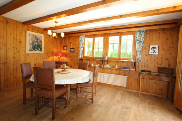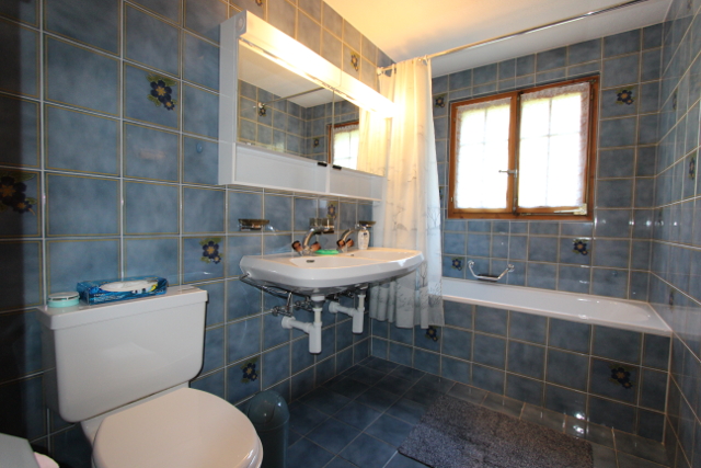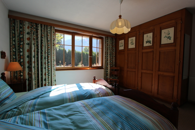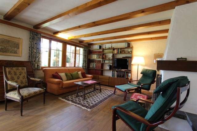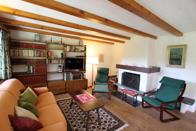 • Ideal für eine Familie Erdgeschoss: Eingangsdiele, grosses Wohnzimmer mit Schlafcouch / Esszimmer mit Cheminée, separate Küche (Backofen, Kühlschrank, Tiefkühler, Geschirrspüler, Mikrowellenofen, Kaffeemaschine), 1 Doppelzimmer, 1 Twin-Zimmer, ein Badezimmer mit WC und Badewanne/Dusche, 1 separate Dusche und 1 separates WC mit Lavabo. Untergeschoss: 1 Spielzimmer, 1 Sauna mit Kaltwasserbecken, Waschküche Äußeres: Terrasse und Süd-West orientierter Garten Parkplatz: 1 Parkplatz in der Tiefgarage.