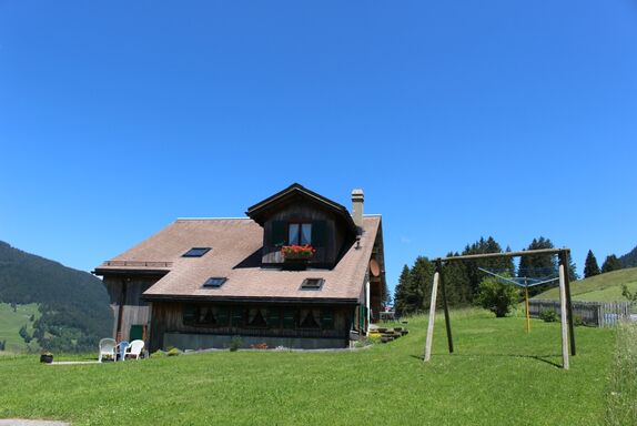 Dieses schöne Apartment befindet sich im Erdgeschoss eines Zwei-Apartment-Chalets. Das Bauernhaus auf der Braye liegt oberhalb von Château-d’Oex, 15 Autominuten vom Dorf entfernt, mitten in der Natur an optimaler Sonnenlage mit wunderschöner Aussicht. Im Sommer leicht zu erreichen, im Winter dagegen ist entsprechende Ausrüstung (4x4 und Winterreifen) erforderlich.