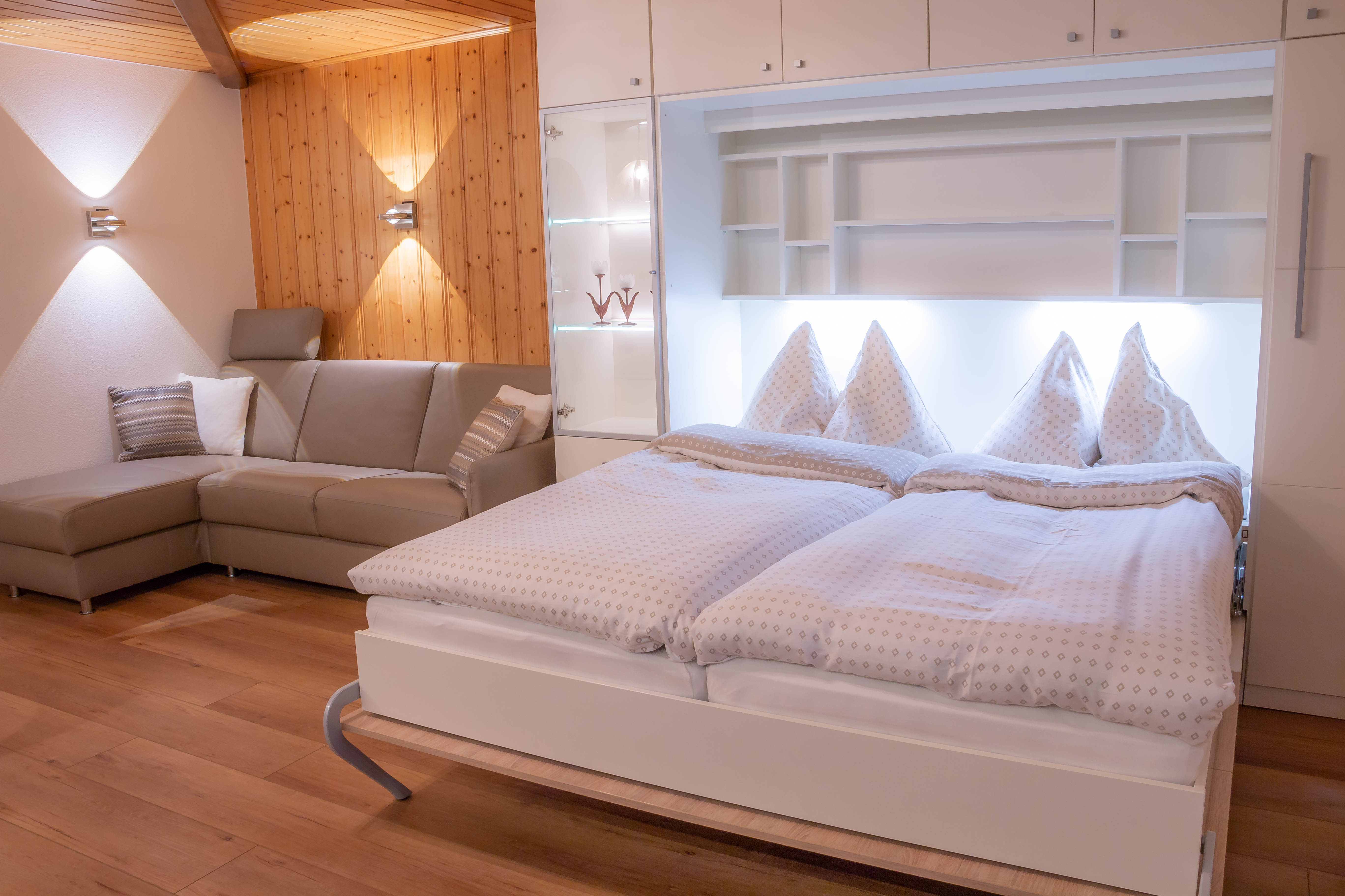 1-Zimmerwohnung mit 2 Betten & 1 Zusatzbett.