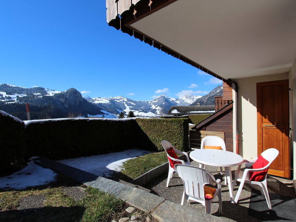 Diese schöne, geschmackvoll renovierte Wohnung befindet sich im Erdgeschoss eines 8-Apartment-Chalets auf den Höhen von Château-d’Oex. Das Chalet verfügt über eine wunderschöne Aussicht mit optimaler Sonneneinstrahlung und liegt nur 2 km vom Dorfzentrum entfernt. Leichter Zugang. Ideal für zwei Personen oder eine Familie. Vermietung ab 4 Nächten möglich