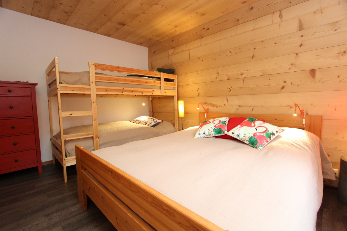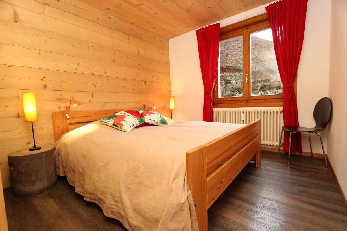 Erdgeschoss : Komfortables Wohnzimmer mit Bettcouch und Holzofen, Esstisch, offener Küche (Backofen, Kühlschrank mit Gefrierfach, Geschirrspüler, Kaffeemaschine, Wasserkocher, Toaster, Fondue- und Raclette-Set), 1 Zimmer mit einem Doppel- und einem Kajütenbett, ein Bad mit Lavabo, WC und Badewanne/Dusche. Gemeinsamer Ski-Abstellraum und Waschküche (mit Waschmaschine und Wäschetrockner). Aussenbereich : 1 kleine Terrasse mit Esstisch und Gartenmöbeln, kleiner Garten. 1 offener, reservierter Parkplatz. Besucherplätze nach 20 m.