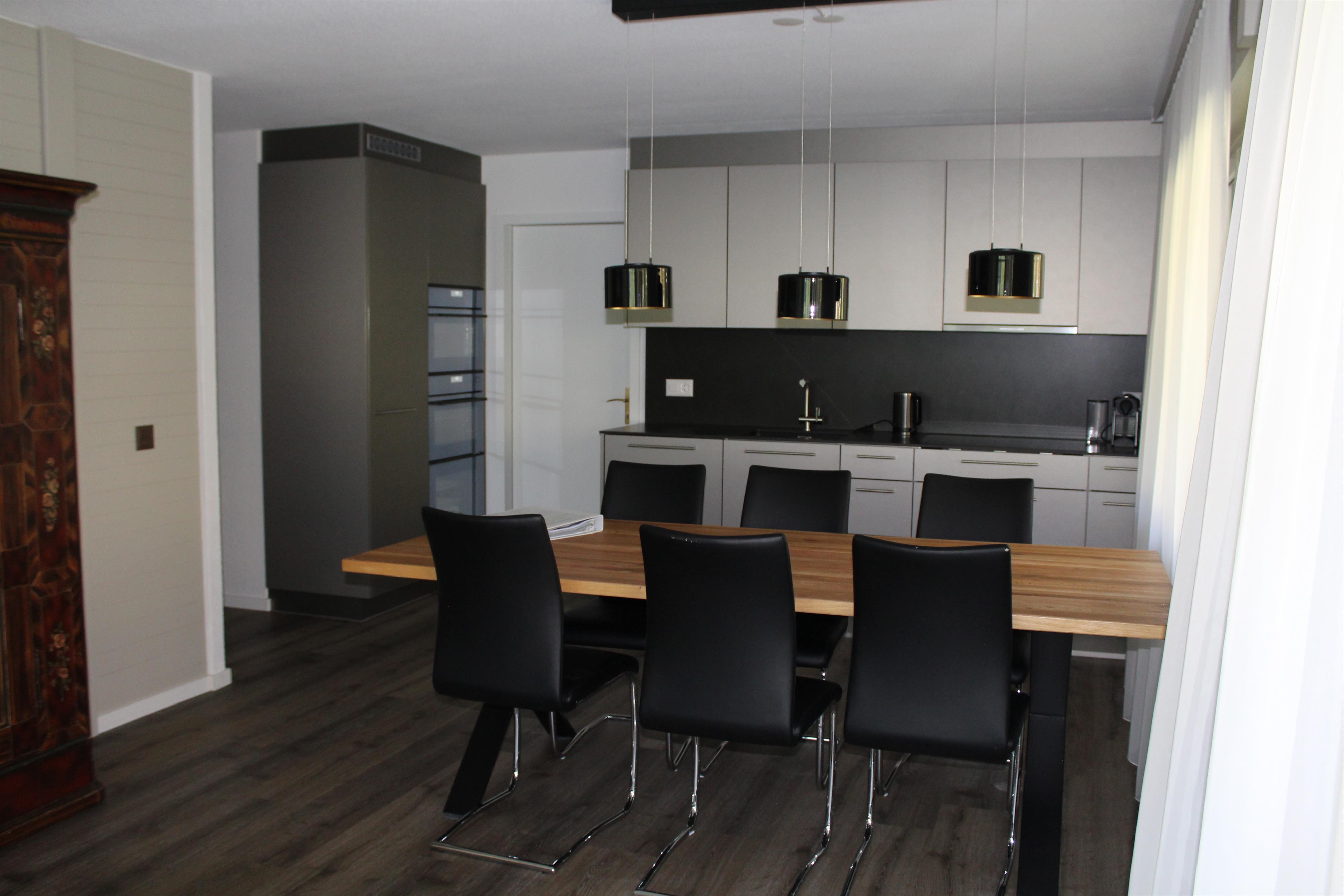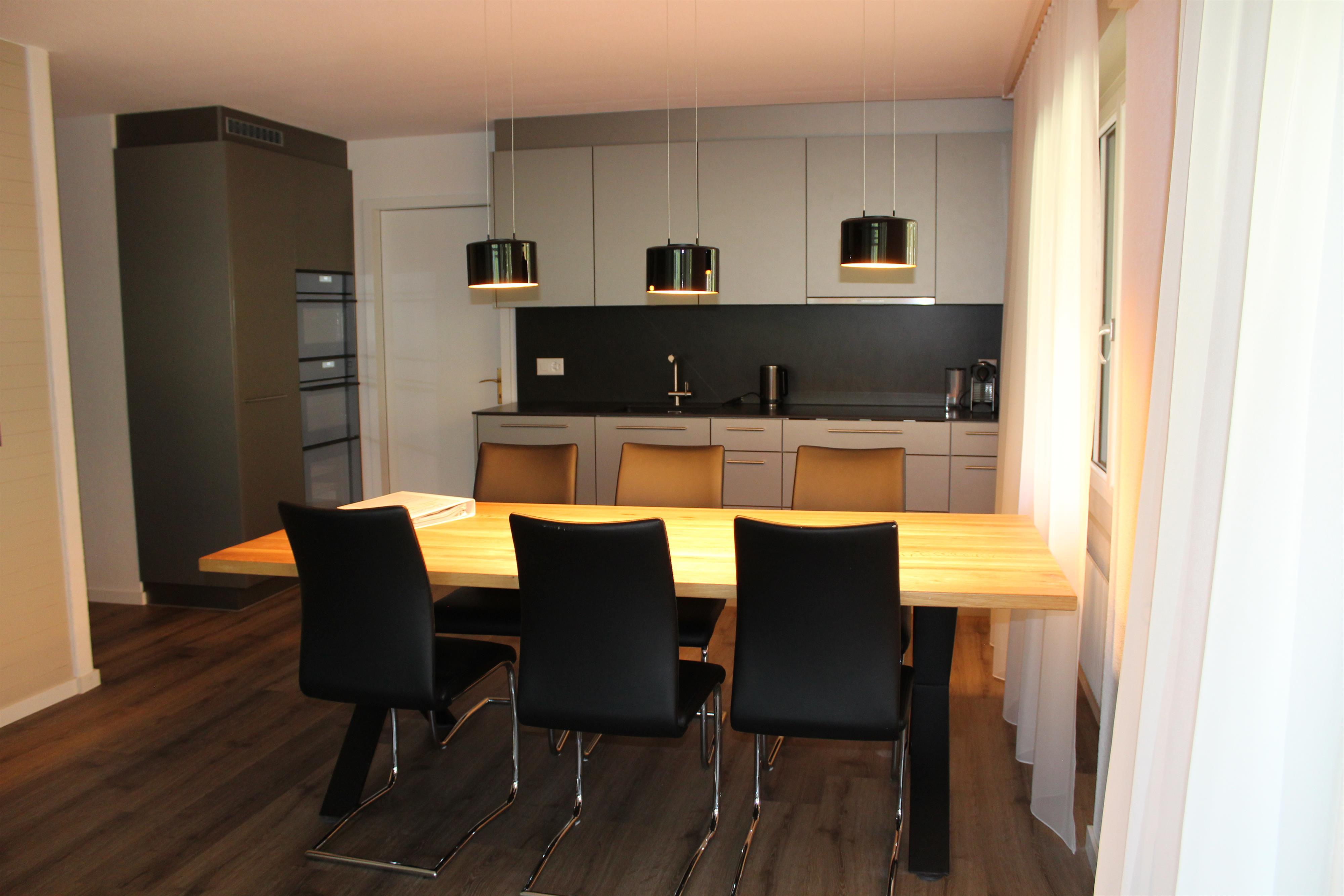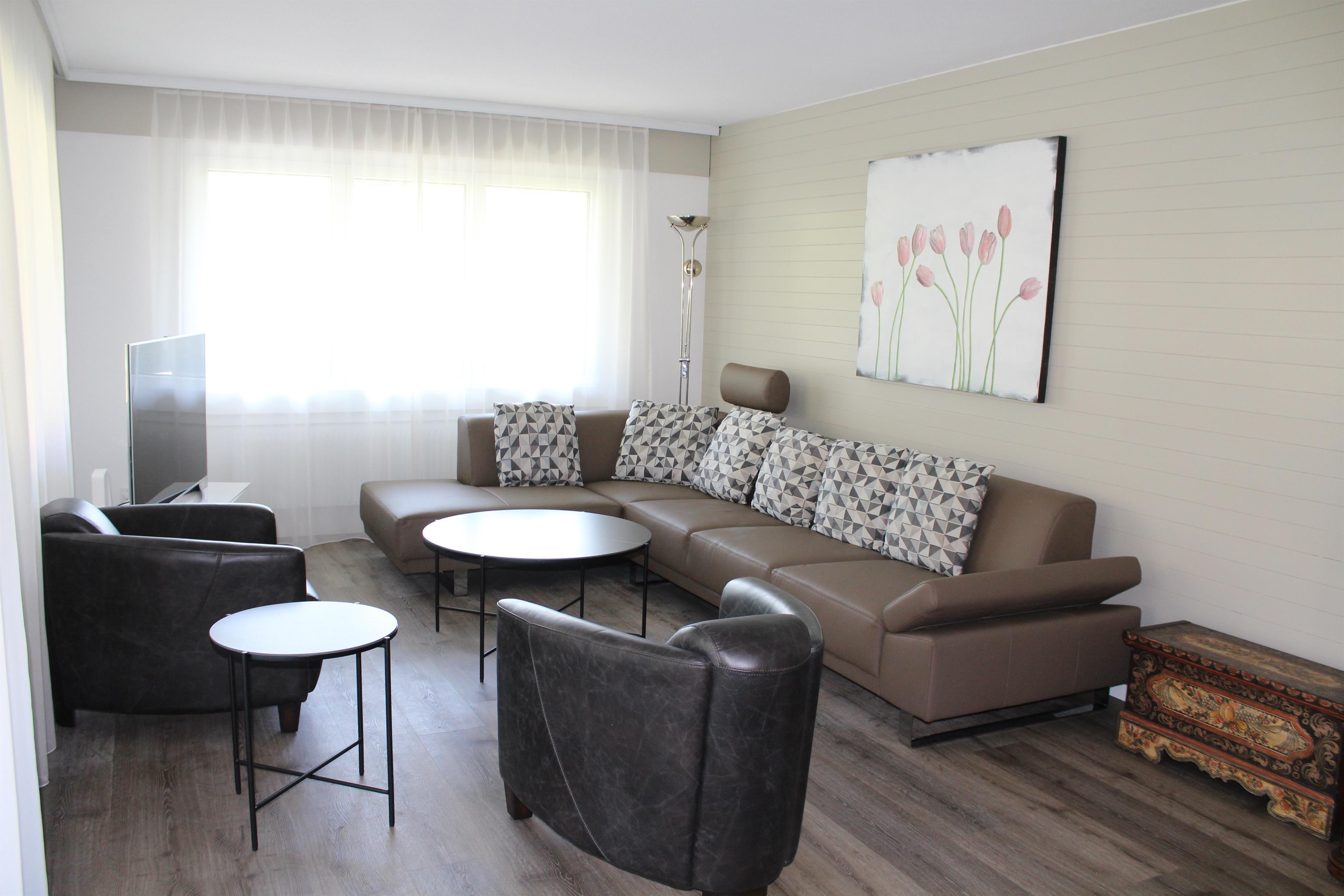 3 1/2 -Zimmerwohnung (78 m2) im Parterre in einem Mehrfamilienhaus mit 6 Wohnungen. 1 Schlafzimmer mit 1 Doppelbett, 1 Schlafzimmer mit 2 Einzelbetten und hinter einer Trennwand 1 weiteres Doppelbett. Kann somit auch als Wohnung mit 3 Schlafzimmern verwendet werden. Alle Duvets nordisch, Bett- und Duschwäsche vorhanden. Wohn-Essküche mit Stymer und Backofen, Kühl- und Weinschrank, Geschirrspüler, Nespresso Kaffeemaschine. Wohnzimmer mit Kabel-TV, Radio, WLAN. 2 Bäder mit je 1 Dusche/WC . Balkon mit schöner Aussicht, Parkplatz in Einstellhalle, Mitbenützung Waschmaschine, eigener Skiraum, Bike Abstellraum mit E Bike Anschluss, Zentralheizung. Nichtraucherwohnung.