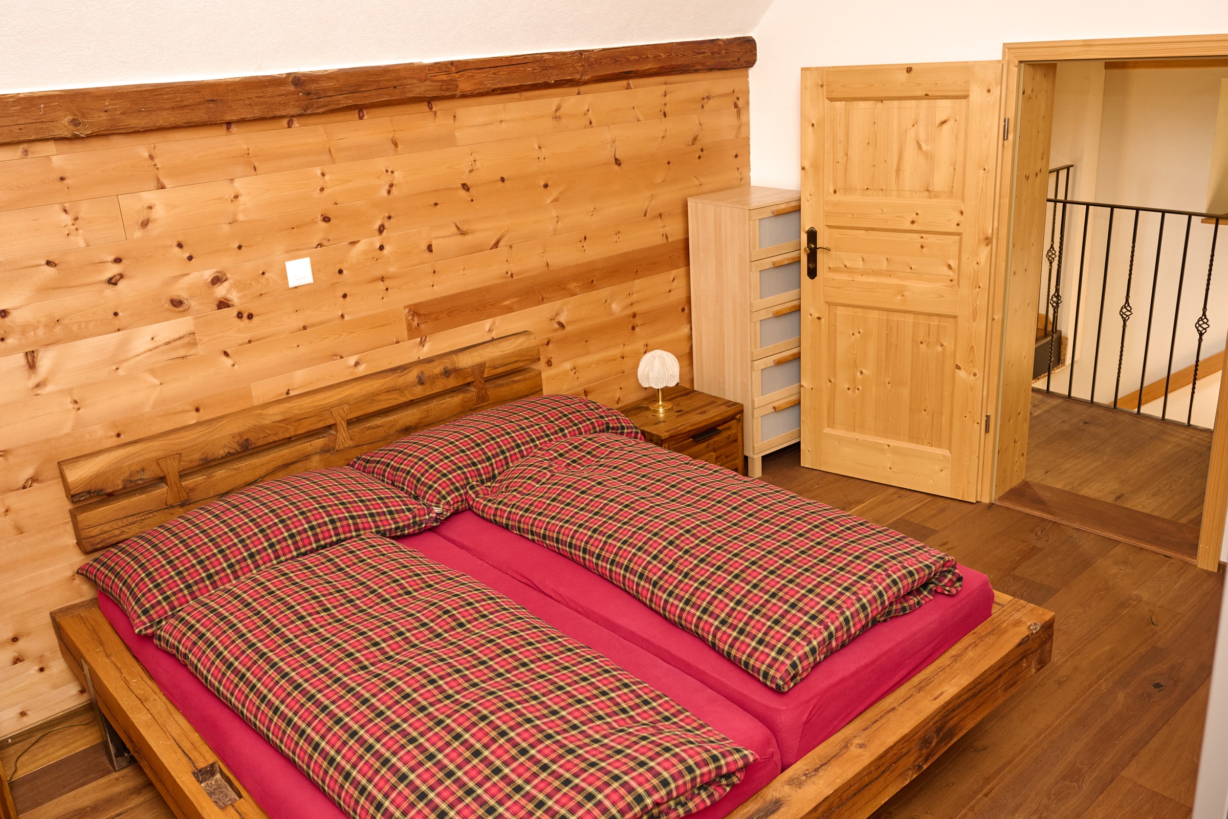 Das Schlafzimmer ist mit einem grossen Doppelbett ausgestattet. Im Wohnbereich steht ein grosses gemütliches Schlafsofa.