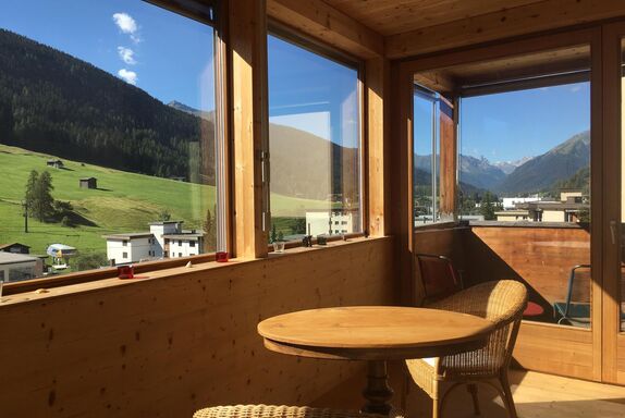 Sehr helle, modern eingerichtete 3.5-Zimmer-Wohnung (70m2) im 1. Stock, in unmittelbarer Nähe (300m) zum Kinder-Ski-Gelände Bolgen sowie zum Jakobshorn; zum Bahnhof Davos Platz sowie Einkaufszentren ebenfalls nur max. 300m; 2 Schlafzimmer, eines mit Doppelbett (180x200cm), das zweite mit zwei Einzelbetten (90x200cm); 1 Bad/WC; separate Küche mit 4-Platten-Glaskeramik-Herd, Geschirrspüler, Kühlschrank inkl. Tiefkühlfach, Bialetti Moka Express, Backofen, Raclette-Ofen, Käse- und Fleisch-Fondue-Set; Wohn-/Esszimmer mit TV-, Radio, iPod/iPhone-Anlage sowie Wireless-Internet; Grosser, gemütlicher Wintergarten mit Sitzecke und Traum-Aussicht. 2 Balkons; Parkplatz vor dem Haus; Bettwäsche, Frotteetücher, nordische Duvets; Haustiere sind nicht erlaubt; Nichtraucherwohnung; Mitbenützung Skiraum und Waschmaschine/Tumbler.
