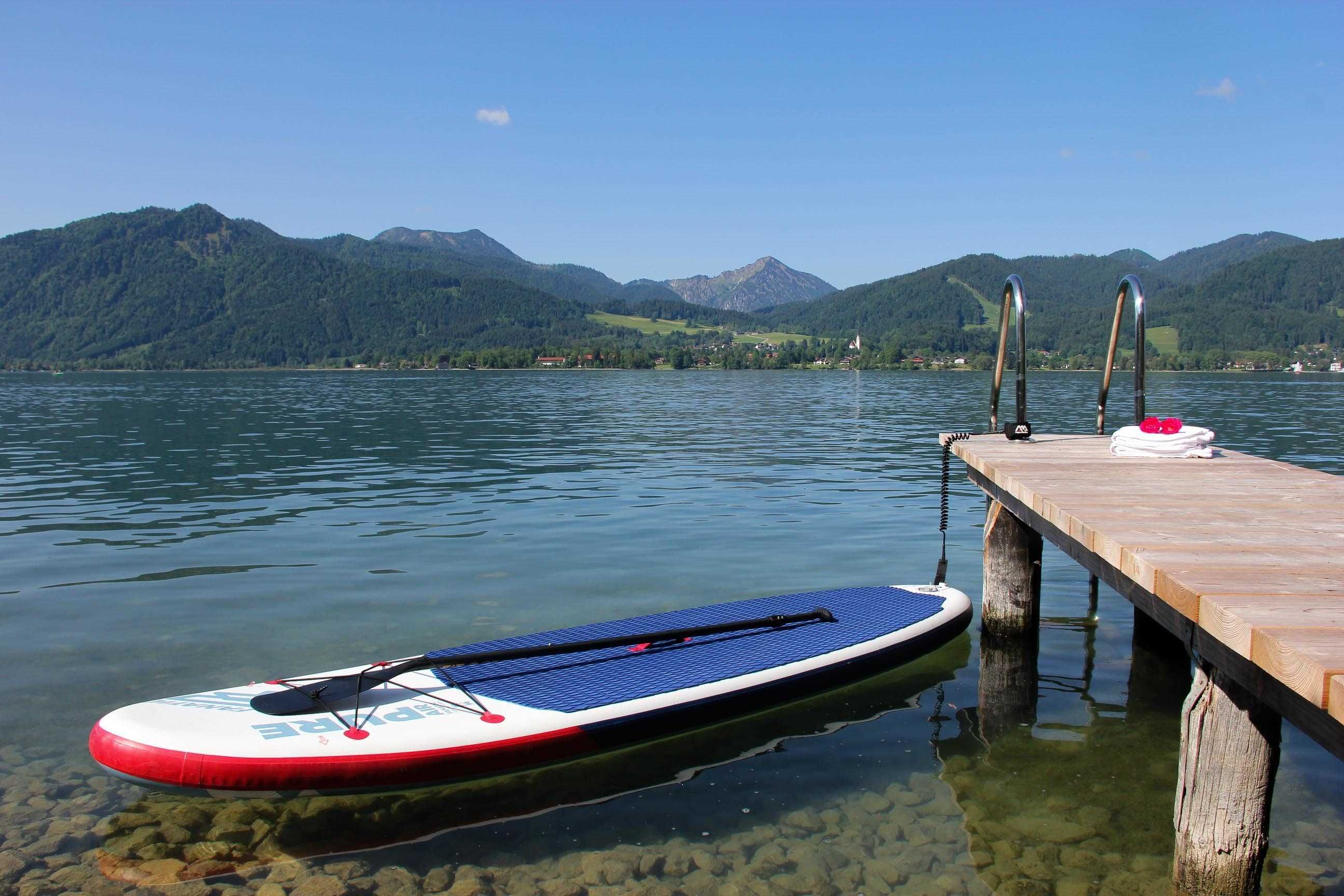 Dazu lädt an heissen Tagen der Tegernsee auf ein Sprung ins Wasser ein. Der Steg befindet sich direkt gegenüber unseres Gebäudes und begrüßt Sie zum Sonnen und Baden. Für alle Stand Up Paddle Fans: Ein SUP verleihen wir ohne Gebühr und direkt vor der Haustüre kann man ins Wasser.
