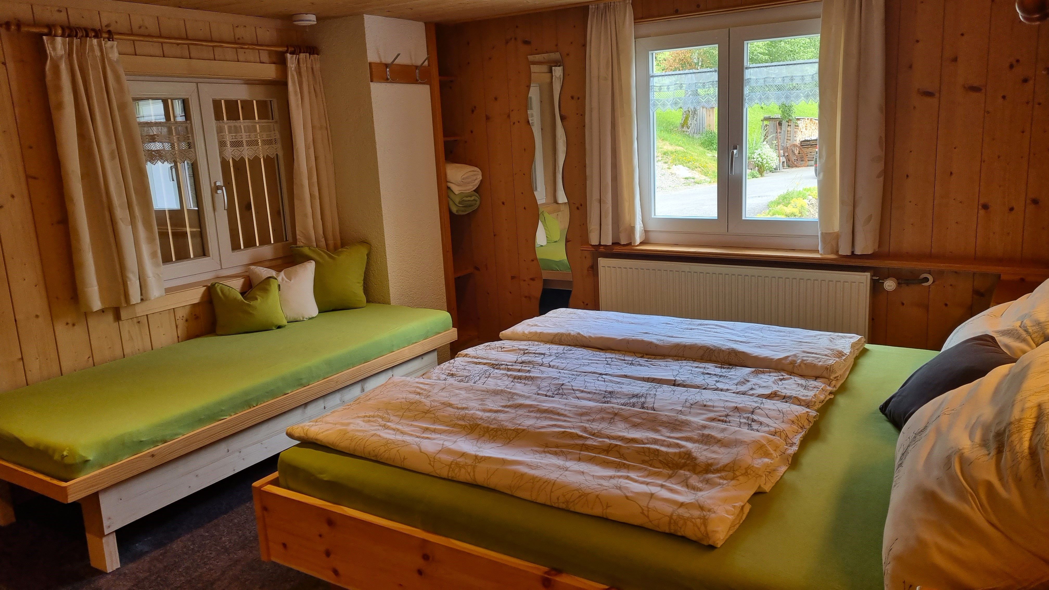 Im Erdgeschoss befindet sich eine kleine Tischlerei (Einmannbetrieb) sowie ein Schuh- bzw. Skiraum, der auch ideal zum Abstellen von Fahrrädern genutzt werden kann. Unsere beliebten Betten aus Zirbenholz, handgefertigt vom Hausherrn, sorgen für besonders erholsame Nächte und zusätzliche Entspannung.