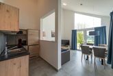 Alle Ferienhäuser des Feriendorfes an der Therme Obernsees sind mit einem hochwertigen möblierten Wohn- und Esszimmer, einer gemütlichen ausziehbaren Sitz- und Schlafcouch sowie einer top ausgestatteten Küche eingerichtet.