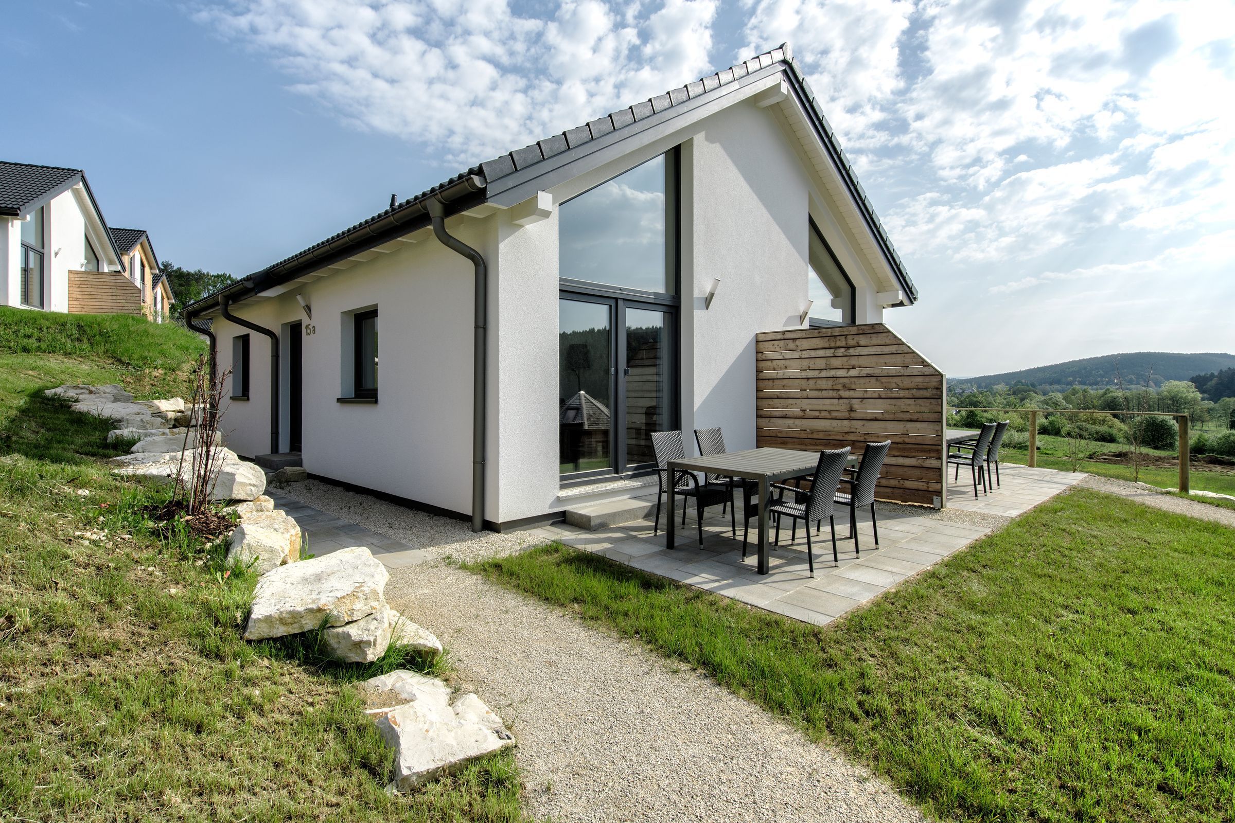 Genießen Sie bei jedem Ferienhaus eine großzügige sonnige Terrasse.