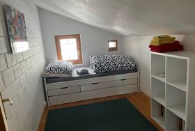 4 Schlafzimmern - 2 Schlafzimmer mit Doppelbett, 1 Schlafzimmer mit Einzelbett, 1 Schlafzimmer mit zwei Einzelbetten und 2 Bettsofas. Bettwäsche vorhanden. Kleiderschränke, Kommoden, Nachttische und Stühle in allen Zimmern vorhanden.