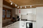 Küche ist komplett eingerichtet. Glaskeramikkochherd plus Holzherd mit Specksteinplatte zum Heizen. Filter Kaffeemaschine, Kühlschrank und Gefrierschrank mit 3 Fächern. Geschirrspüler, Racletteofen, Fondue-Set. Küchenwäsche vorhanden und inklusive.