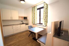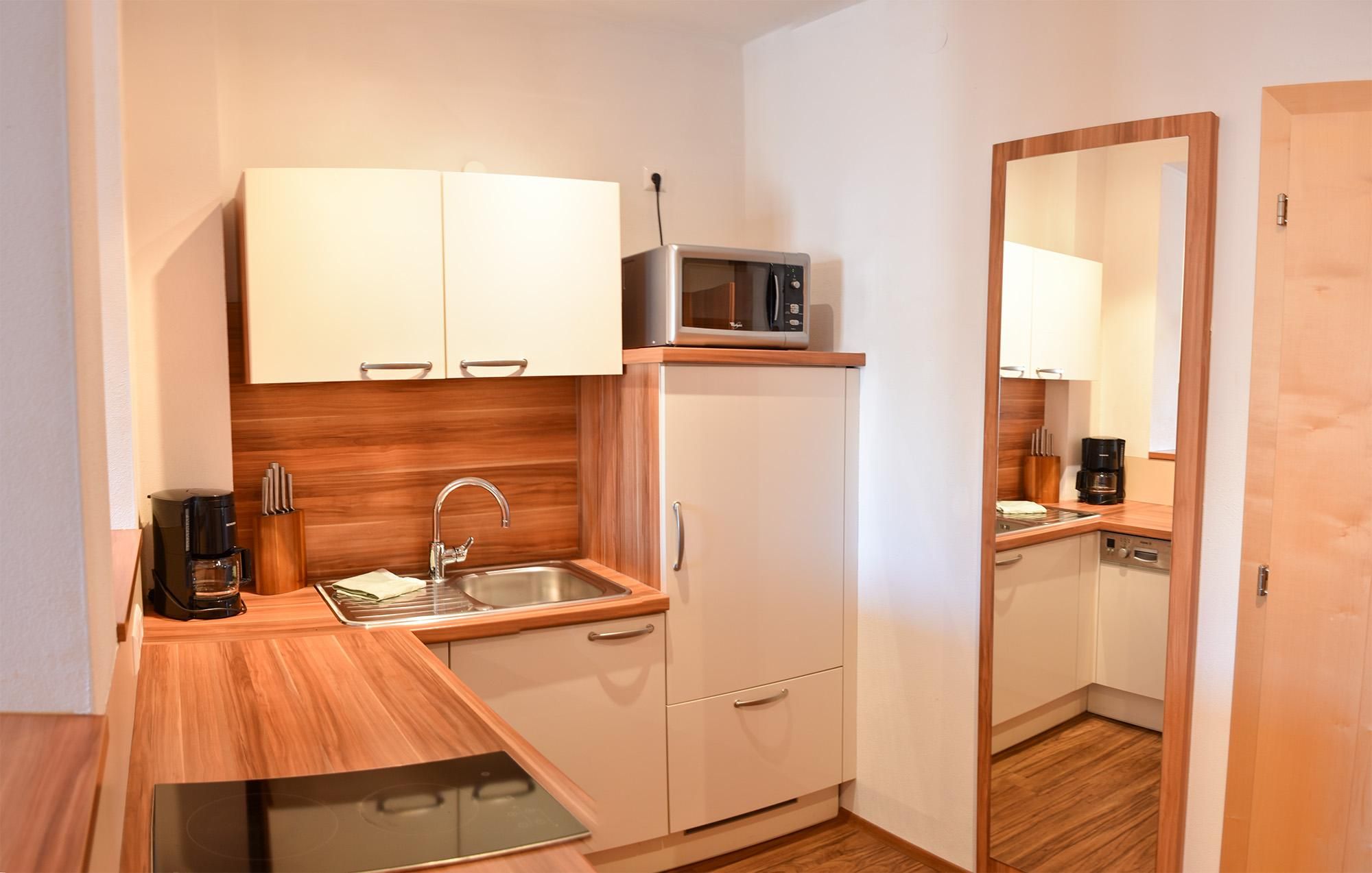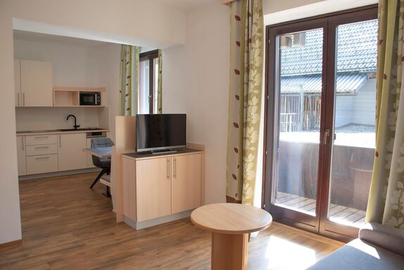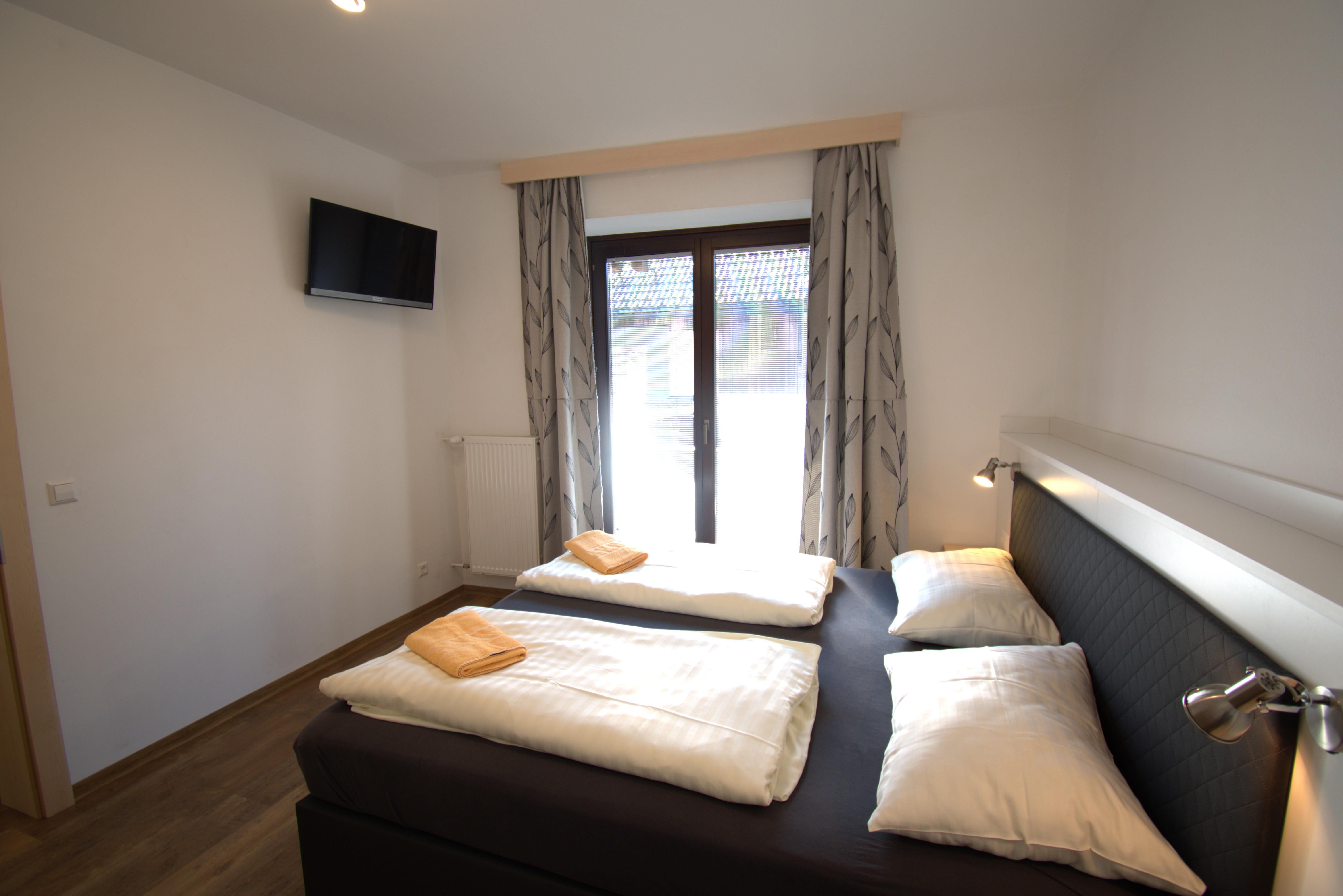 Ferienwohungen mit ca. 48 m² Wohnfläche für 1 bis 4 Personen. Jeweils 1 Schlafzimmer, Wohn-/Schlafraum mit Ausziehbetten, Kochnische, Essecke, Kochgeschirr, Mikrowelle, Wasserkocher, Balkon mit Seeblick, Bad oder Dusche/WC, Radio, Sat-TV, Safe und Fön.