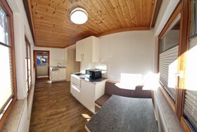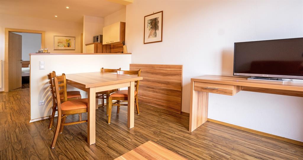 Wohnstudio mit ca. 35 m² Wohnfläche für 1 bis 2 Personen. Wohn-/Schlafraum mit Küche, Essecke, Kochgeschirr, Mikrowelle, Wasserkocher, Balkon, Bad oder Dusche/WC, Radio, Sat-TV, Safe und Fön.