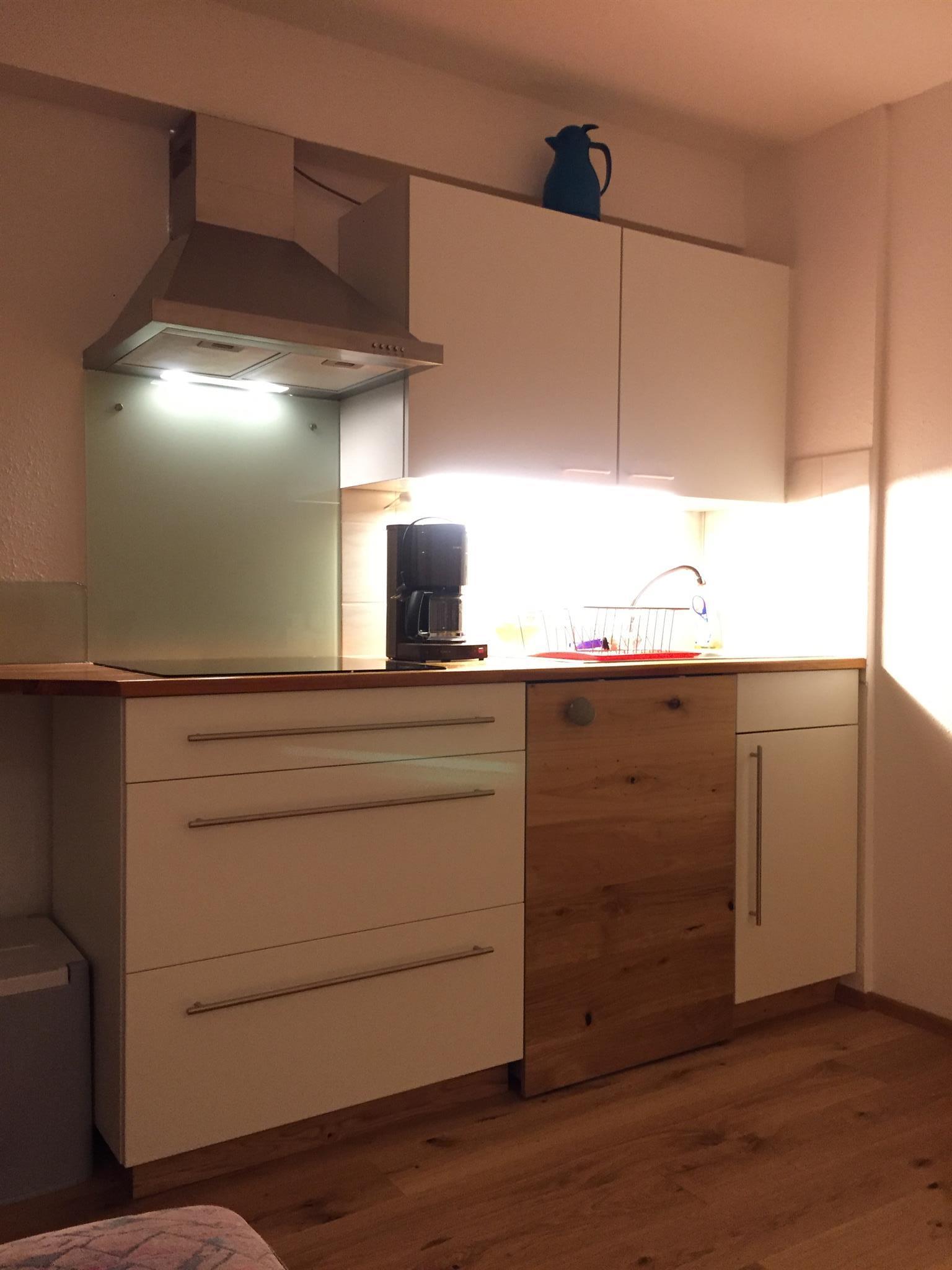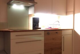 Sie ist ausgestattet für bis zu 5 Personen mit zwei getrennten Schlafräumen, Bad, Wohn-Ess-Kochbereich.