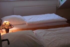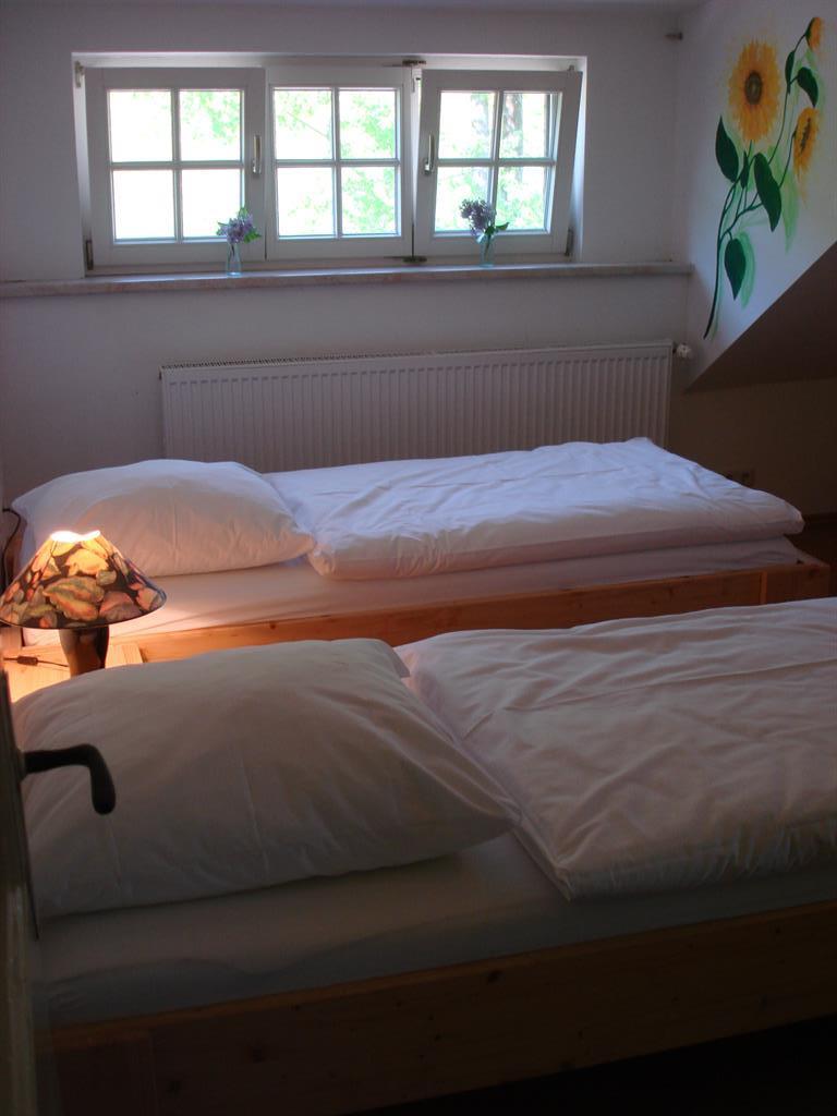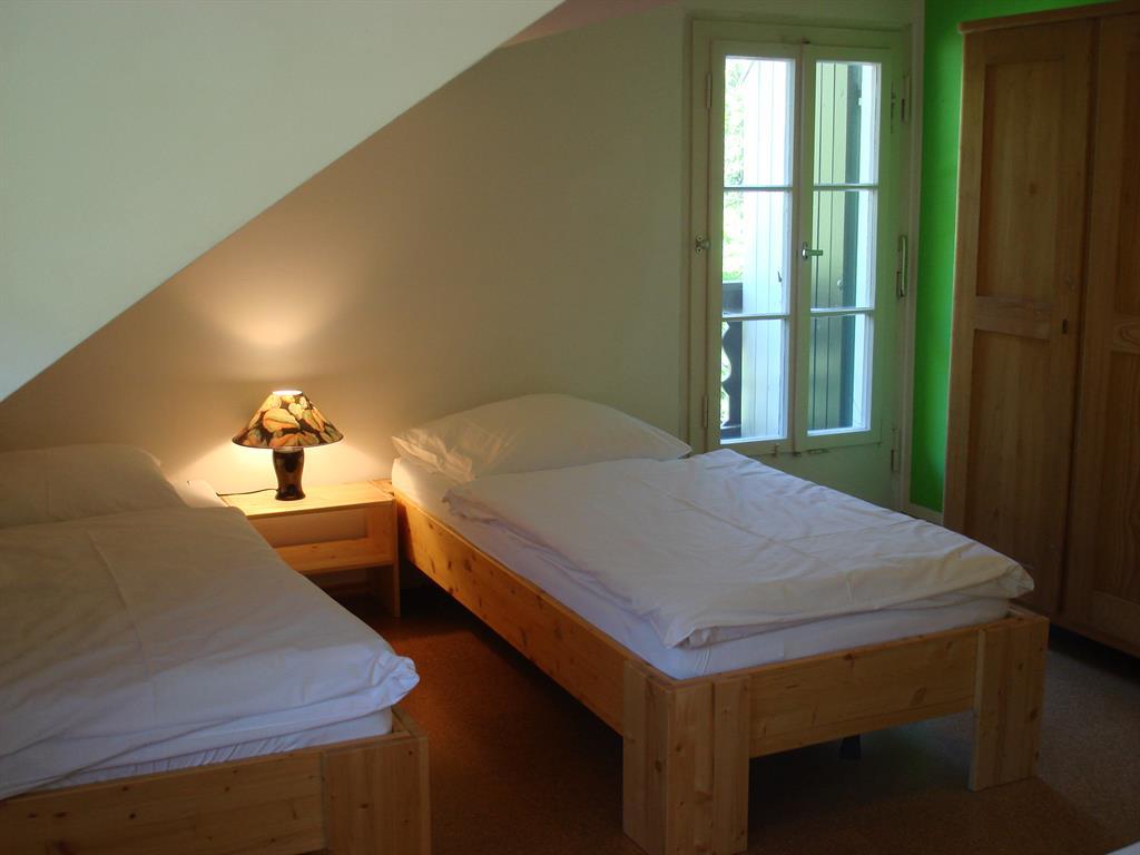 Unser Zi14 ist ein 4-Bett-Zi mit Waschbecken und Etagen-DU/-WC. Es teilt sich die Etagen-DU sowie die beiden Etagen-WC mit den Zimmern 13, 15 und 16.