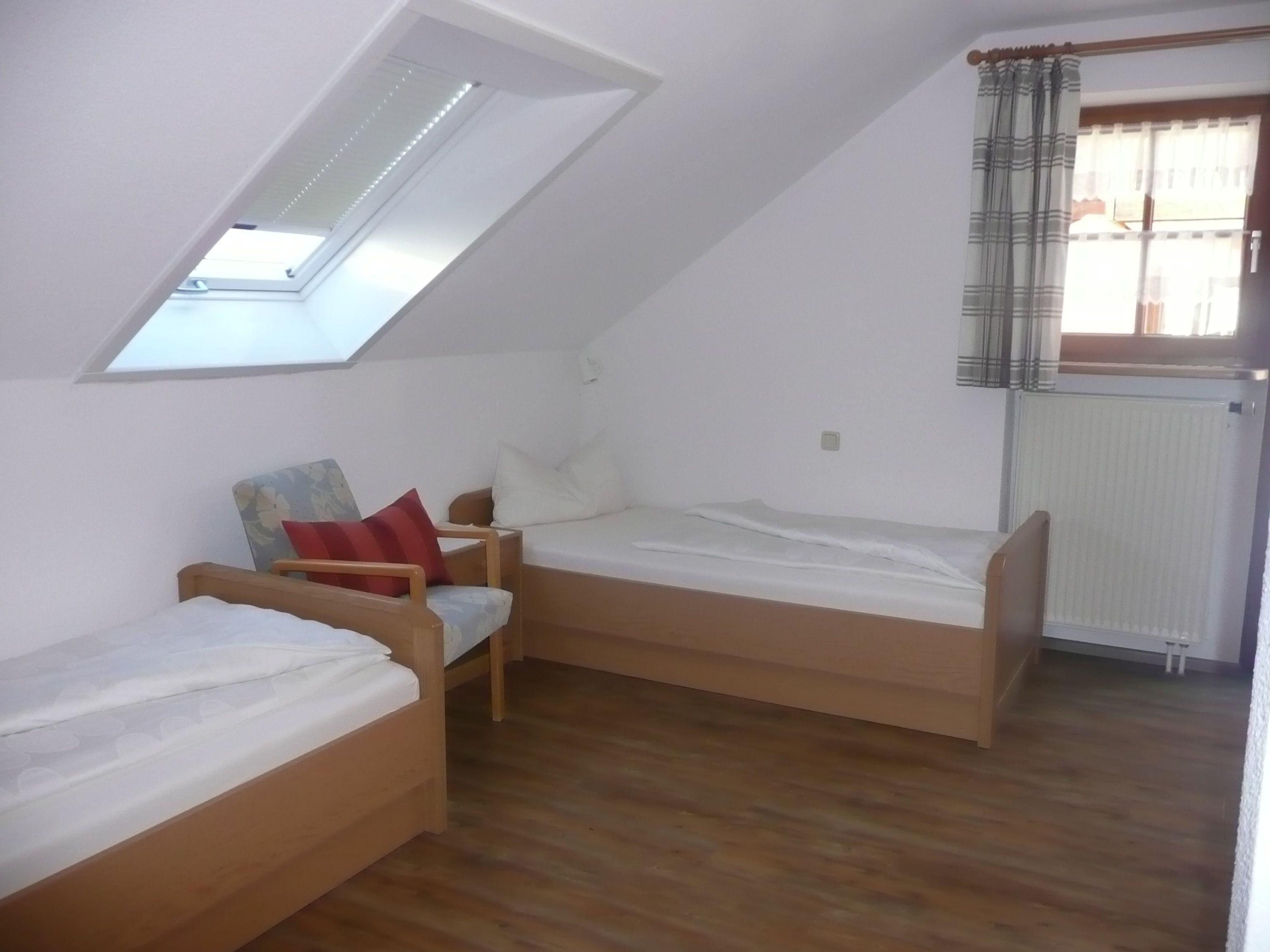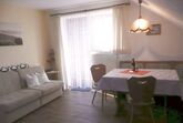 Unsere Ferienwohnung mit 35-55 m² im Dachgeschoss eines neuwertigen Einfamilienhauses ist geeignet für 2-4 Personen. Bestehend aus Wohnraum mit Essecke und komplett eingerichteter Küchenzeile mit E-Herd Ceranfeld und Backofen, 2 separate Schlafräume (Lattenroste verstellbar), ein Zustellbett (Schlafsessel), Dusche / WC mit Fenster, Südwestbalkon, Radio mit CD und Kabel-TV. WLAN.