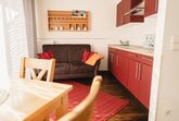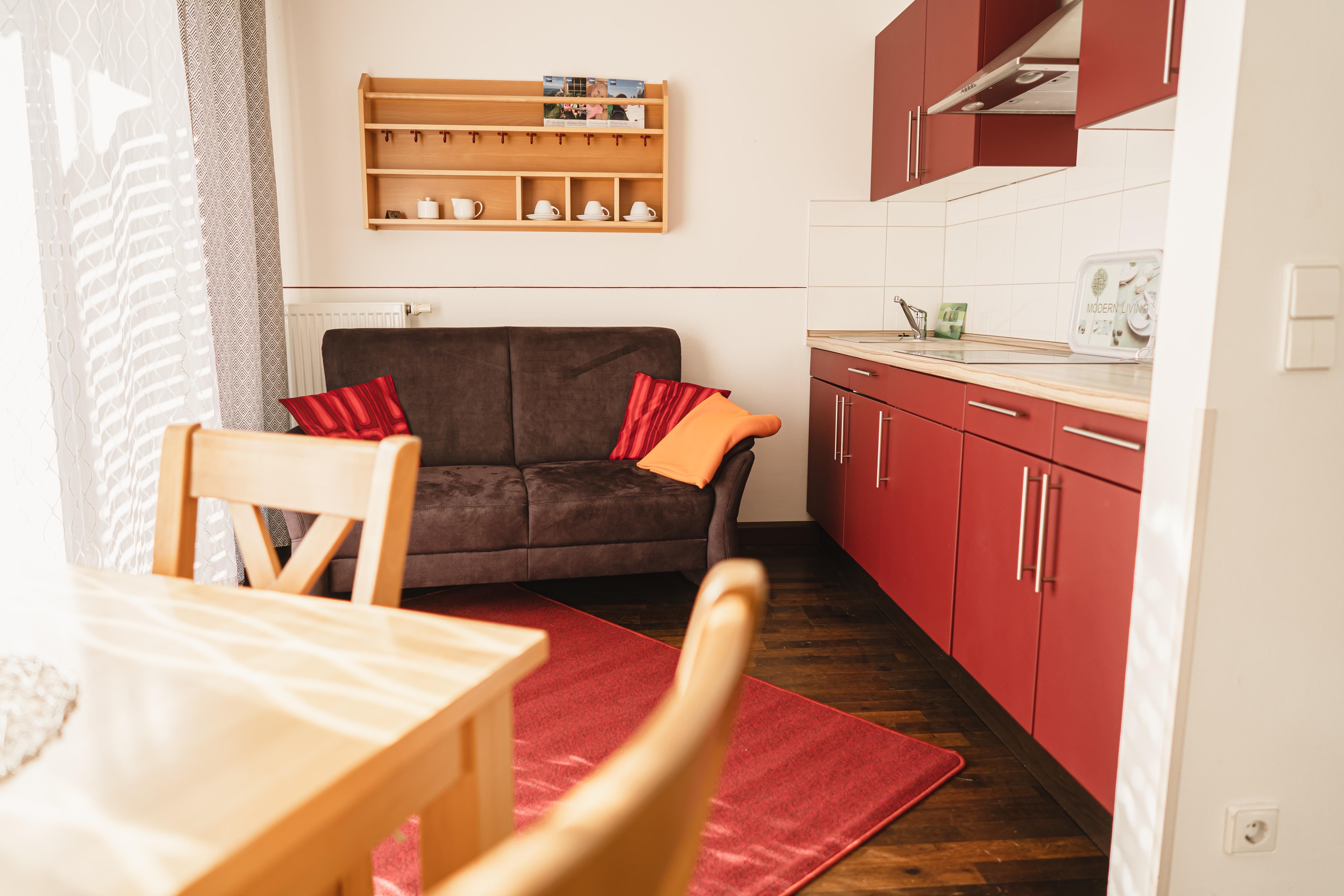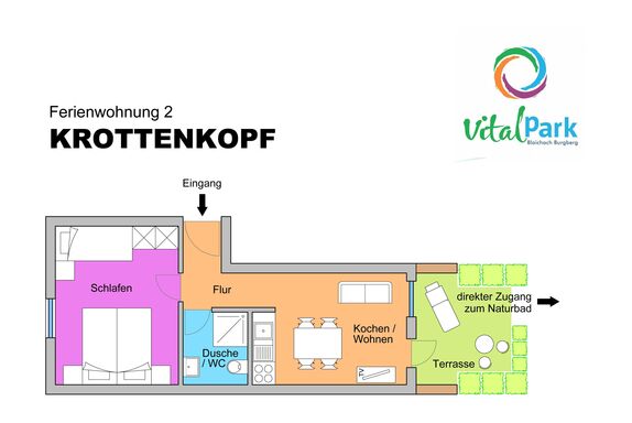 Die Wohnung hat ein abgetrenntes Schlafzimmer, einen stilvoll eingerichteten Wohn- & Essbereich mit Küchenzeile sowie ein helles Badezimmer mit Dusche und WC. Im Wohnraum finden Sie eine einladende Couch sowie Sat-TV. Zusätzlich eine eigene Terrasse mit Zugang zum Vital-Park.