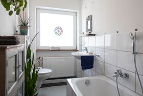 1 Schlafzimmer, beides südostseitig - und 1 Badezimmer mit Badewanne.
