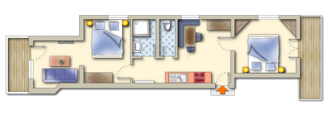 Das geräumige Appartement GRÜNBERG ist mit seinen 63m² die perfekte Unterkunft für den Familienurlaub! Auf Wunsch verwöhnen wir Sie gerne mit unserem Brötchenservice. Die Ferienwohnung ist mit Mikrowelle, Wasserkocher, Kaffeemaschine (Filter und Nespresso), Geschirrspüler, Flat-TV, Radio, Safe und Fön ausgestattet. Bettwäsche, Hand- & Geschirrtücher werden ebenfalls bereitgestellt.