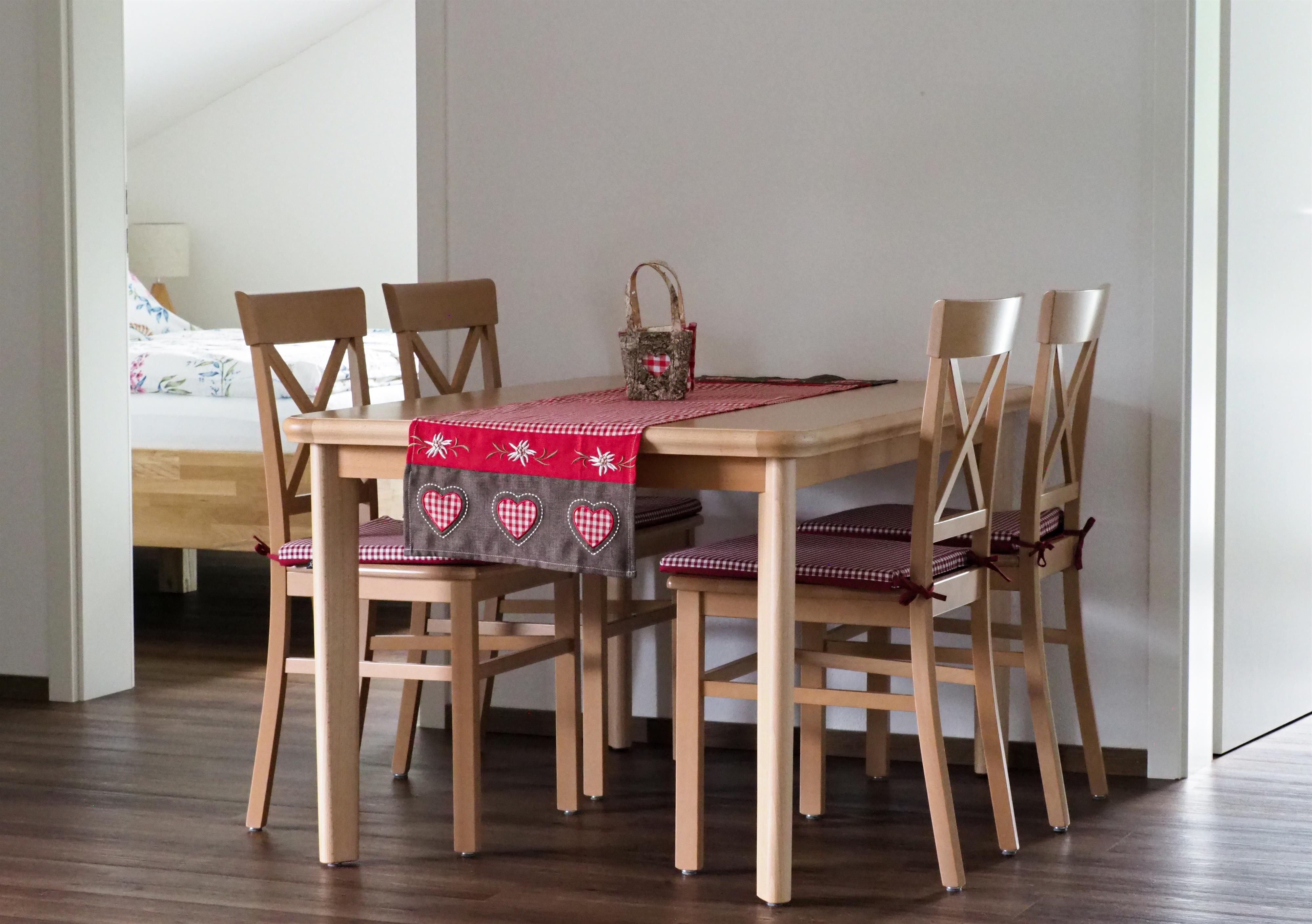In unseren neuen Ferienwohnung Viehweid finden Sie 1 Schlafzimmer mit Doppelbett, eine Ausziehcouch (1-2 Personen) im Wohnzimmer und eine vollausgestattete Küche.