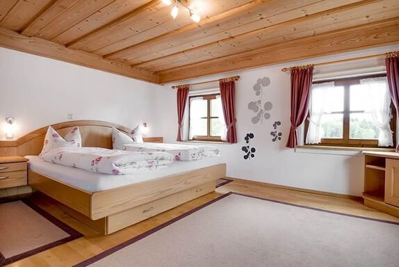 Geräumiges Doppelzimmer 25qm mit Bad ca 4qm, Dusche und WC und einer kleinen Bauernstube 15qm mit Kachelofen.