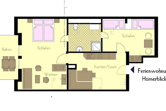 Die Ferienwohnung Hörnerblick befindet sich im Dachgeschoss.