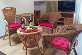 Sie verfügen über einen großen Wohn-/Schlafraum mit Doppelbett. Die NEU eingerichtete Küche mit Essecke ist ausgestattet mit Spülmaschine, Kühlschrank,4-Plattenherd, Backofen,Dunstabzug, Kaffeemaschine, Toaster, Eierkocher, Wasserkocher und den üblichen Kochutensilien. Im Kinderzimmer befinden sich 2 Betten. Im Bad sind Dusche, WC und Waschbecken.