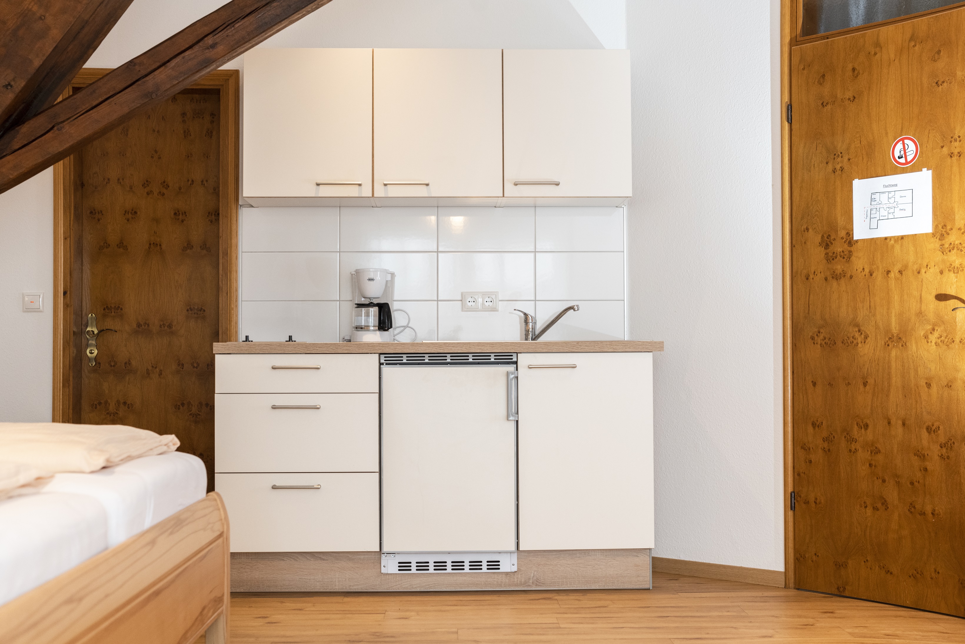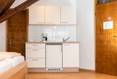 Unsere Apartments sind Doppelzimmer mit einer Wohn- und Schlafkombination. Daneben beinhaltet jedes Apartment eine Küchenzeile. Eine Schlafcouch ermöglicht auch die Unterbringung von bis zu 3 Personen. Auch diese Zimmer sind alle mit Dusche/WC ausgestattet.