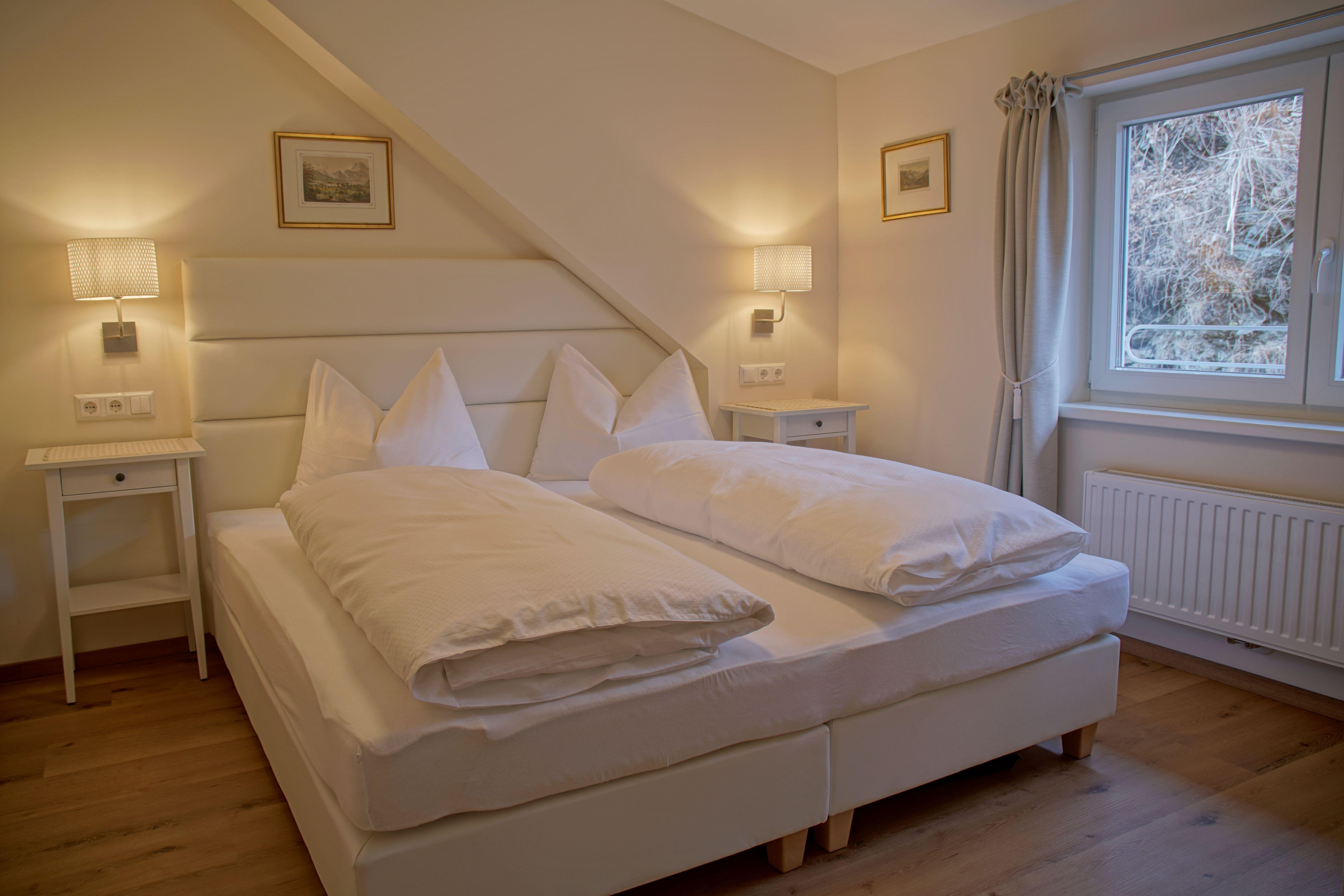 Gemütliches Appartement mit zwei Schlafzimmern mit Boxspringbetten und Badezimmer mit WC.