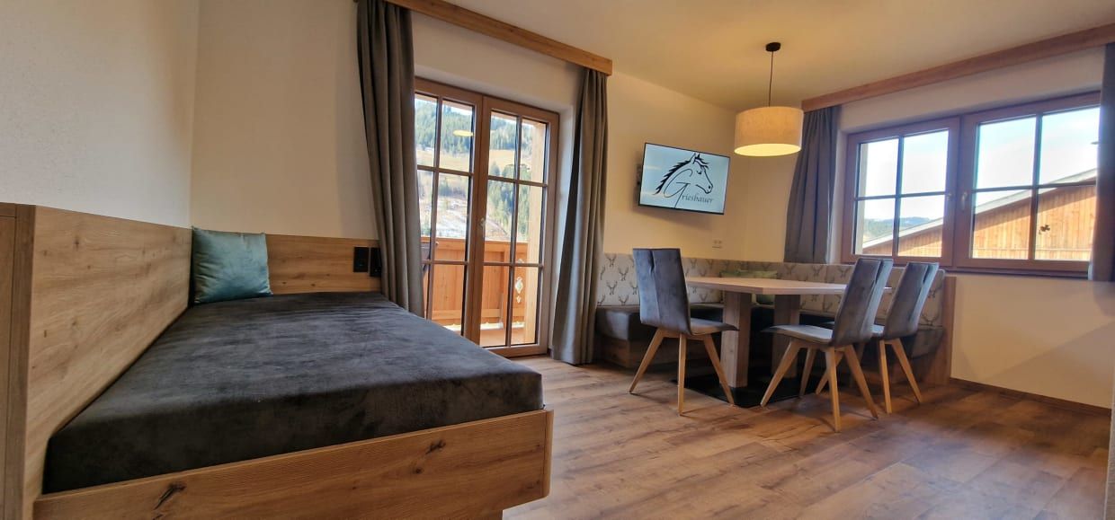 Das Appartement Enzian mit Doppelzimmer im 2. Stock unseres Hauses ist gemütlich eingerichtet und bietet Platz für 5-6 Personen.