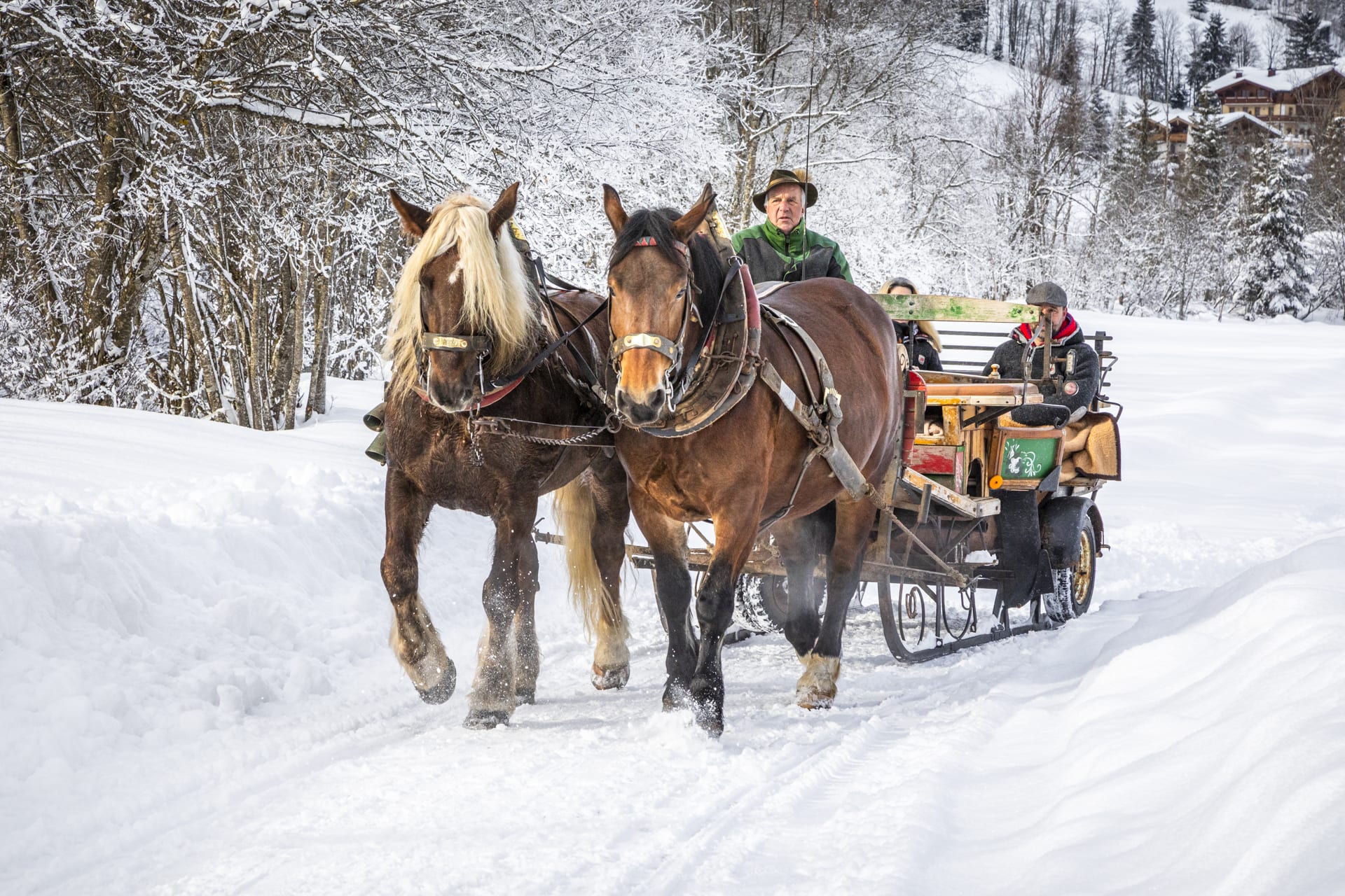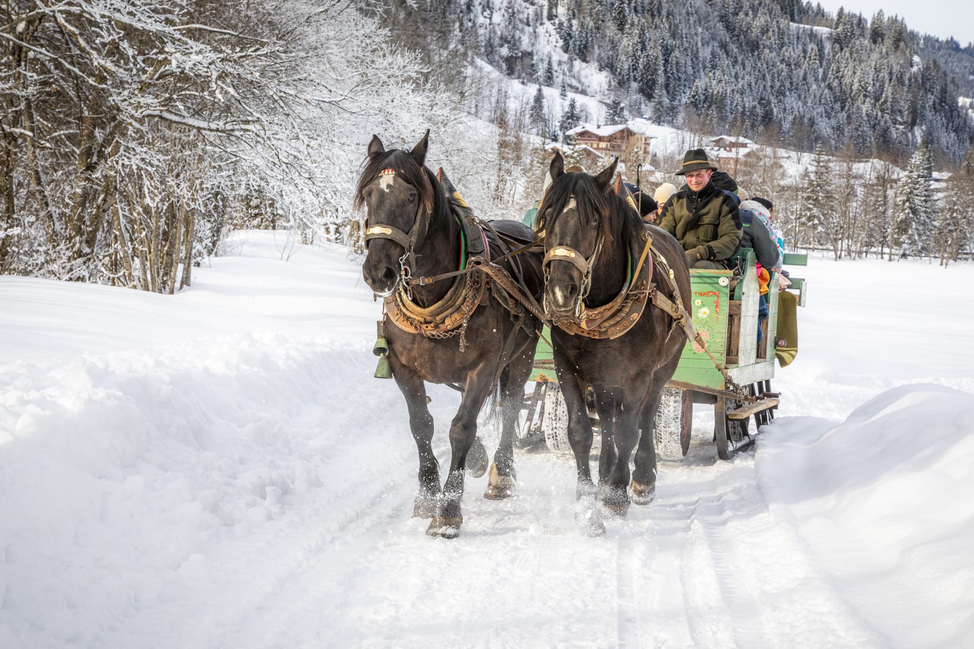 Ein besonderes Highlight sind unsere romantischen Pferdeschlittenfahrten durch die verschneite Winterlandschaft – eingekuschelt in warme Decken, fernab vom Trubel.
